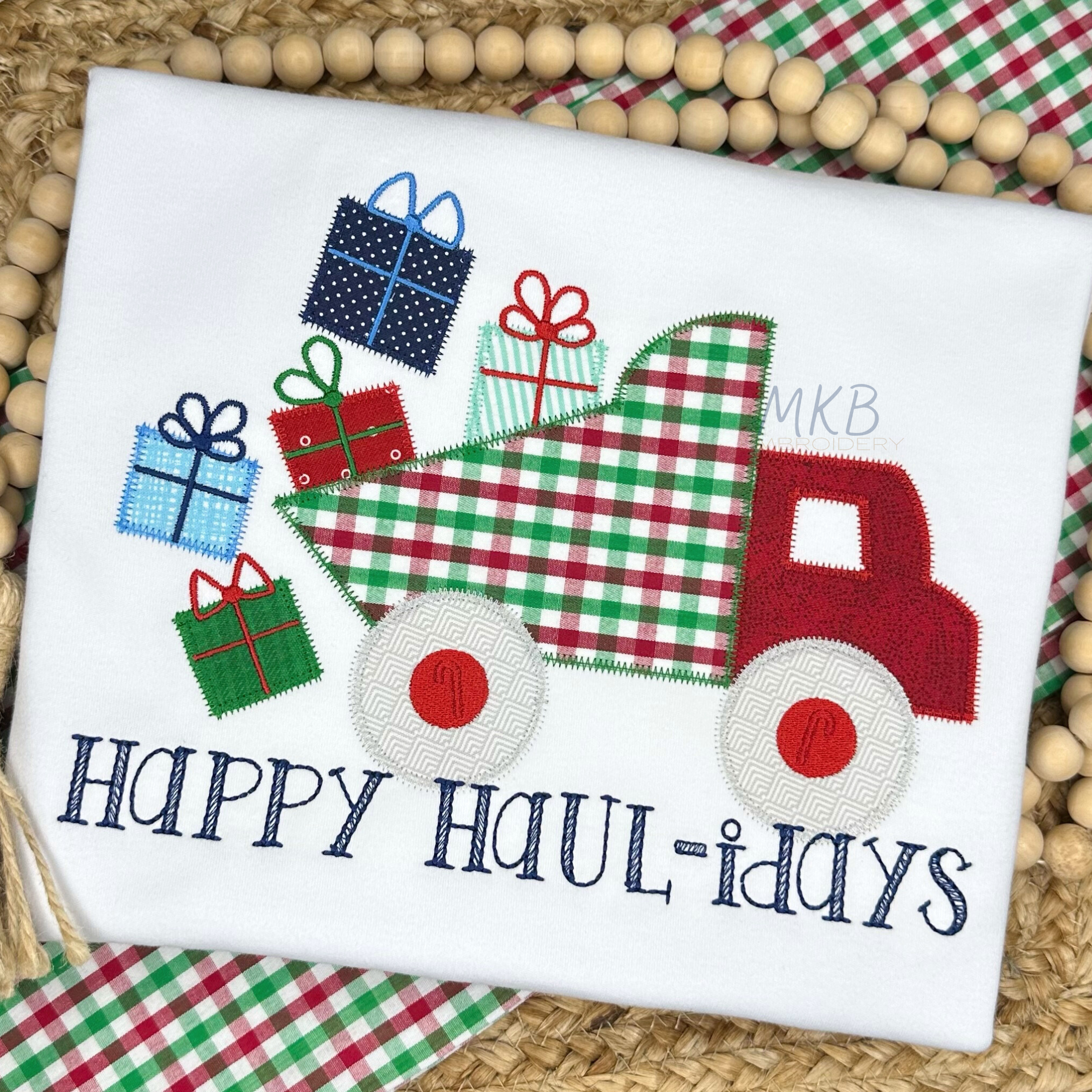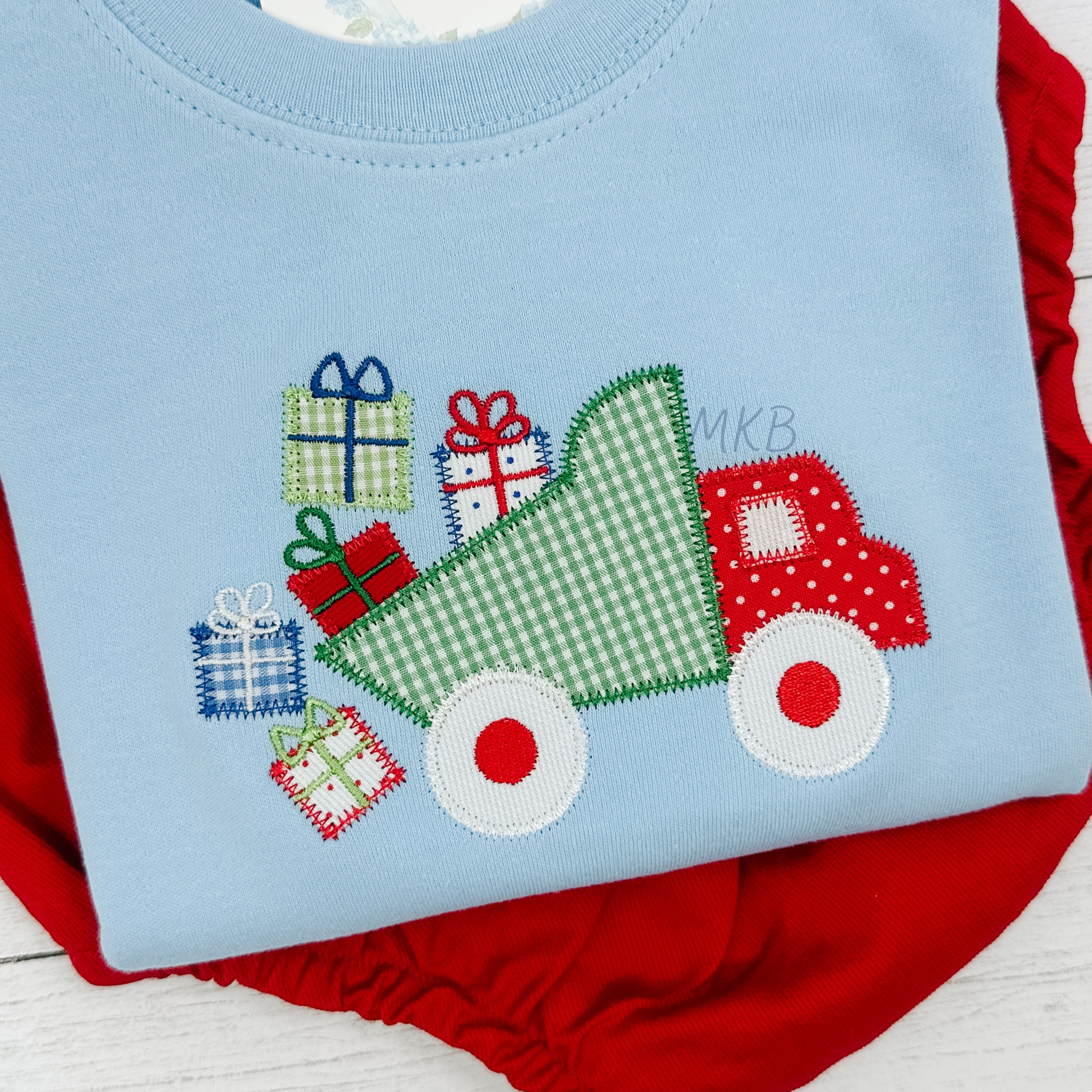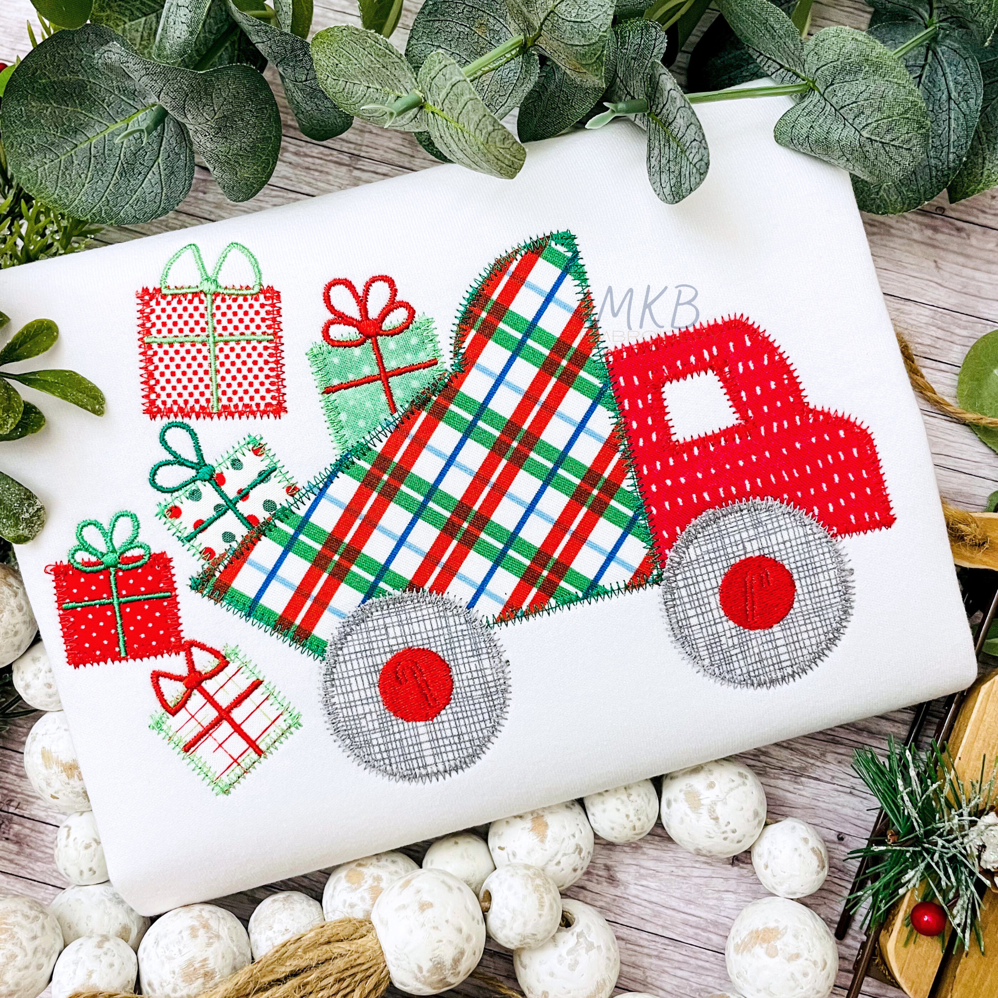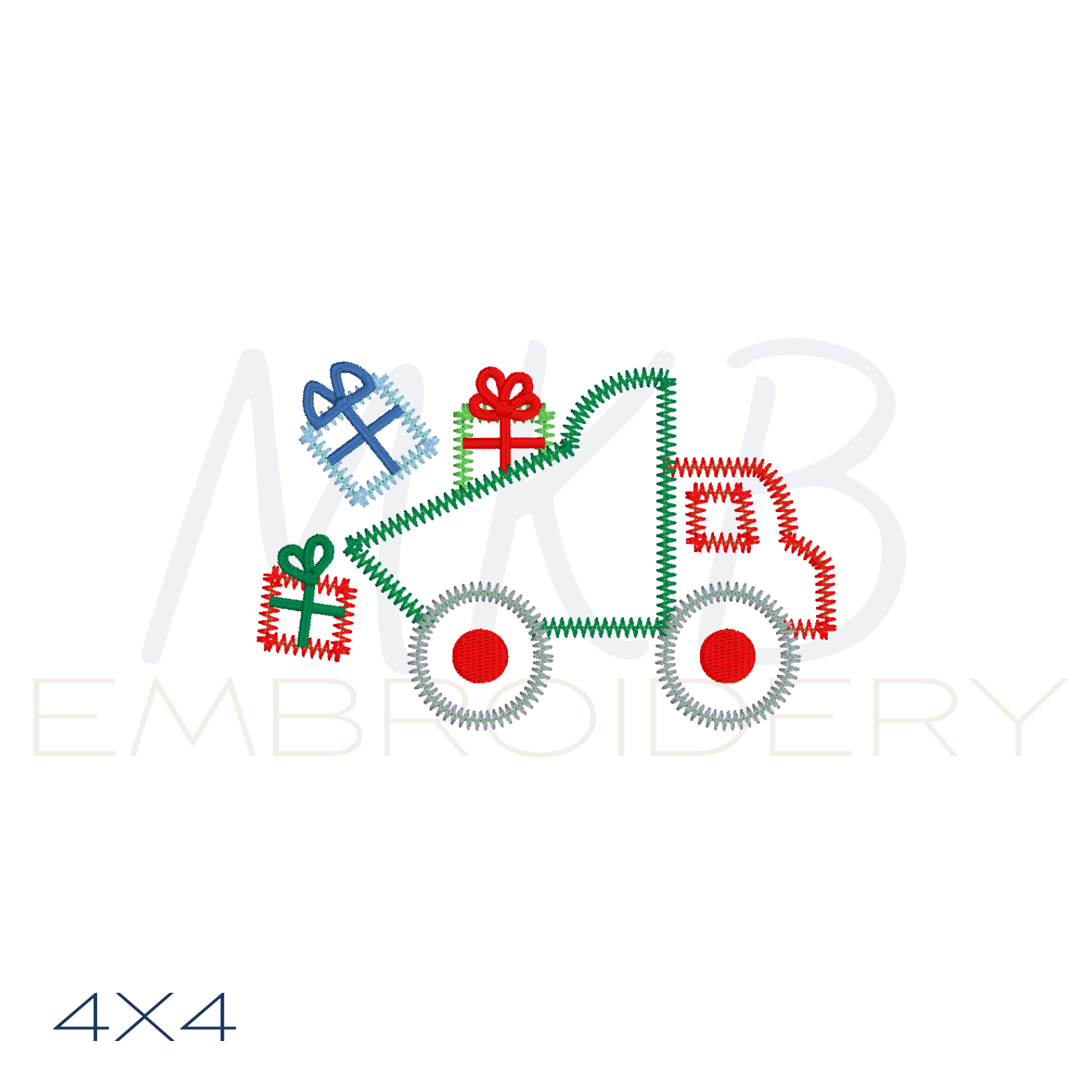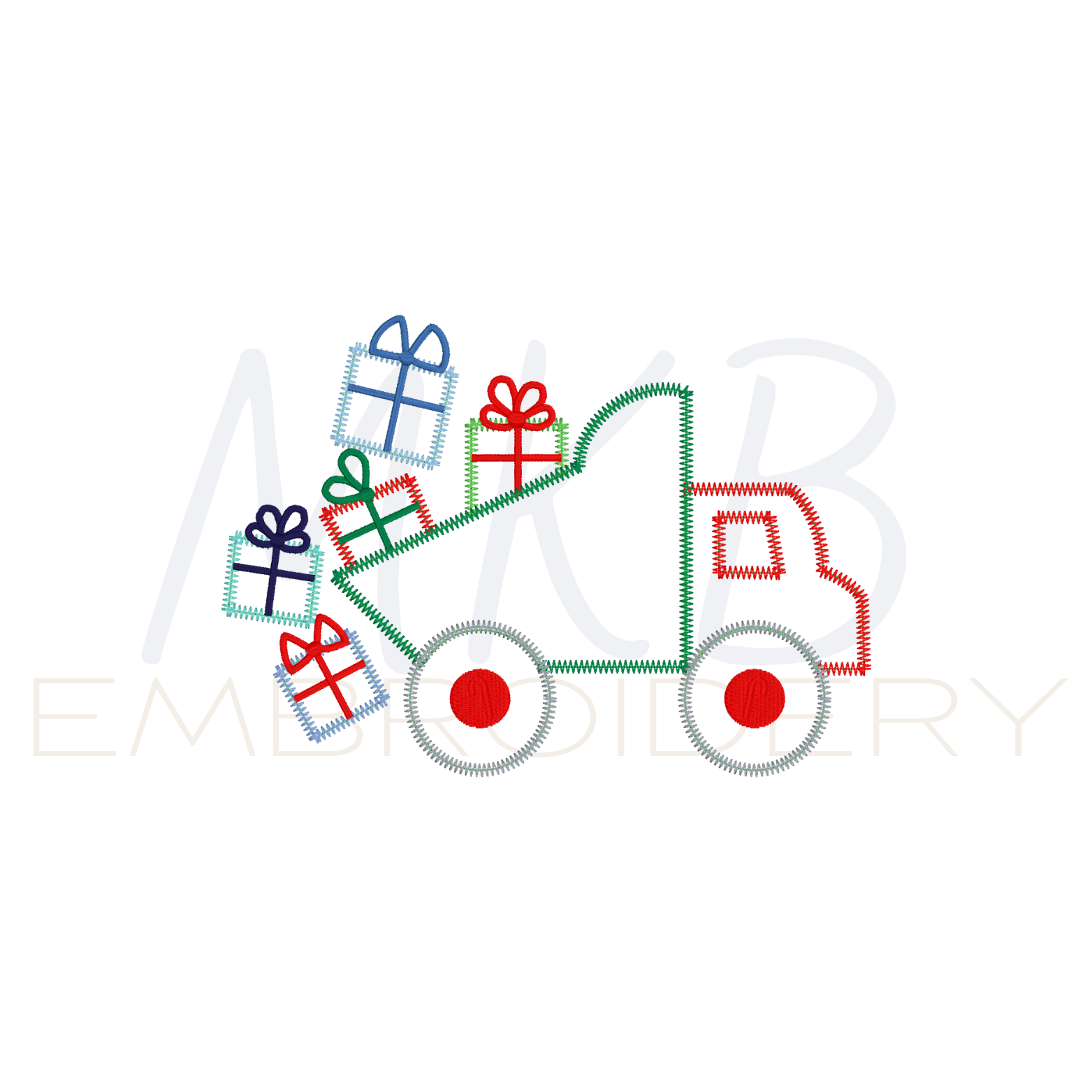 Christmas Present Dump Truck Zig Zag Stitch Applique Embroidery Design