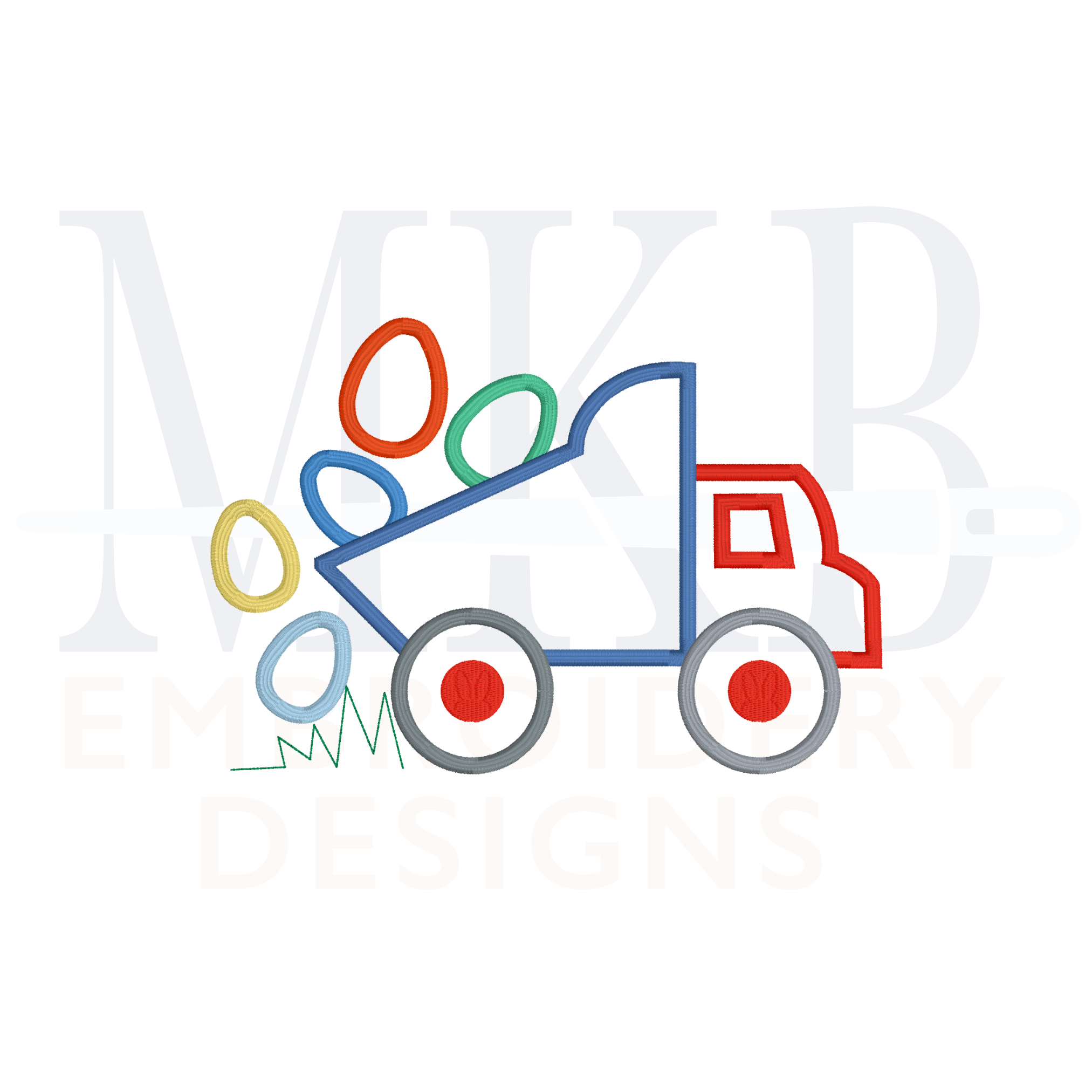 Easter Egg Dump Truck Satin Stitch Applique Embroidery Design