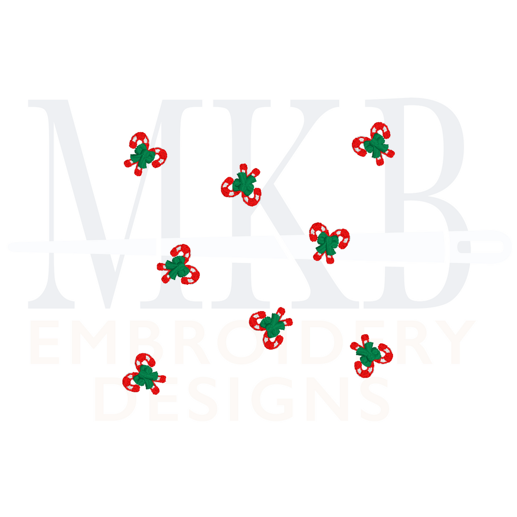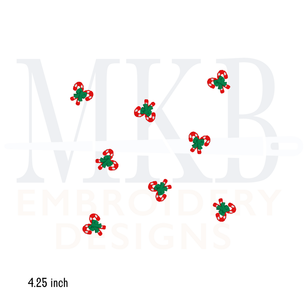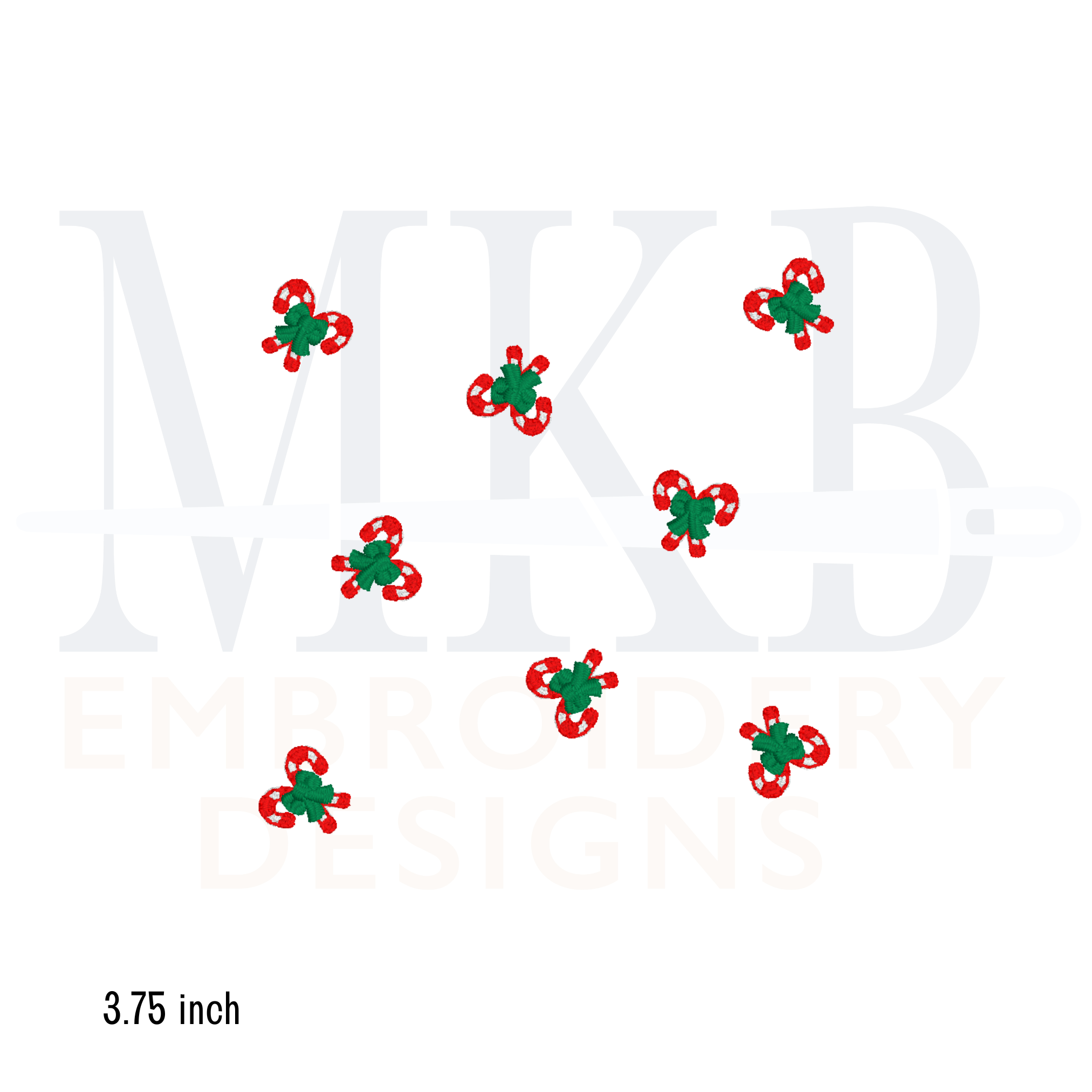 ◾ Candy Canes Crossed with a Bow Scattered for Cocktail Napkins Machine Embroidery Design includes the following arrangement sizes: