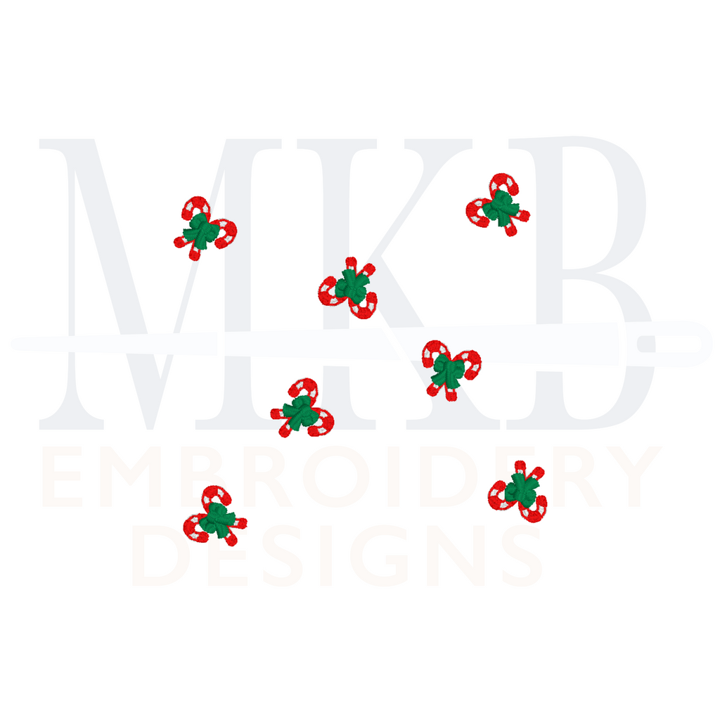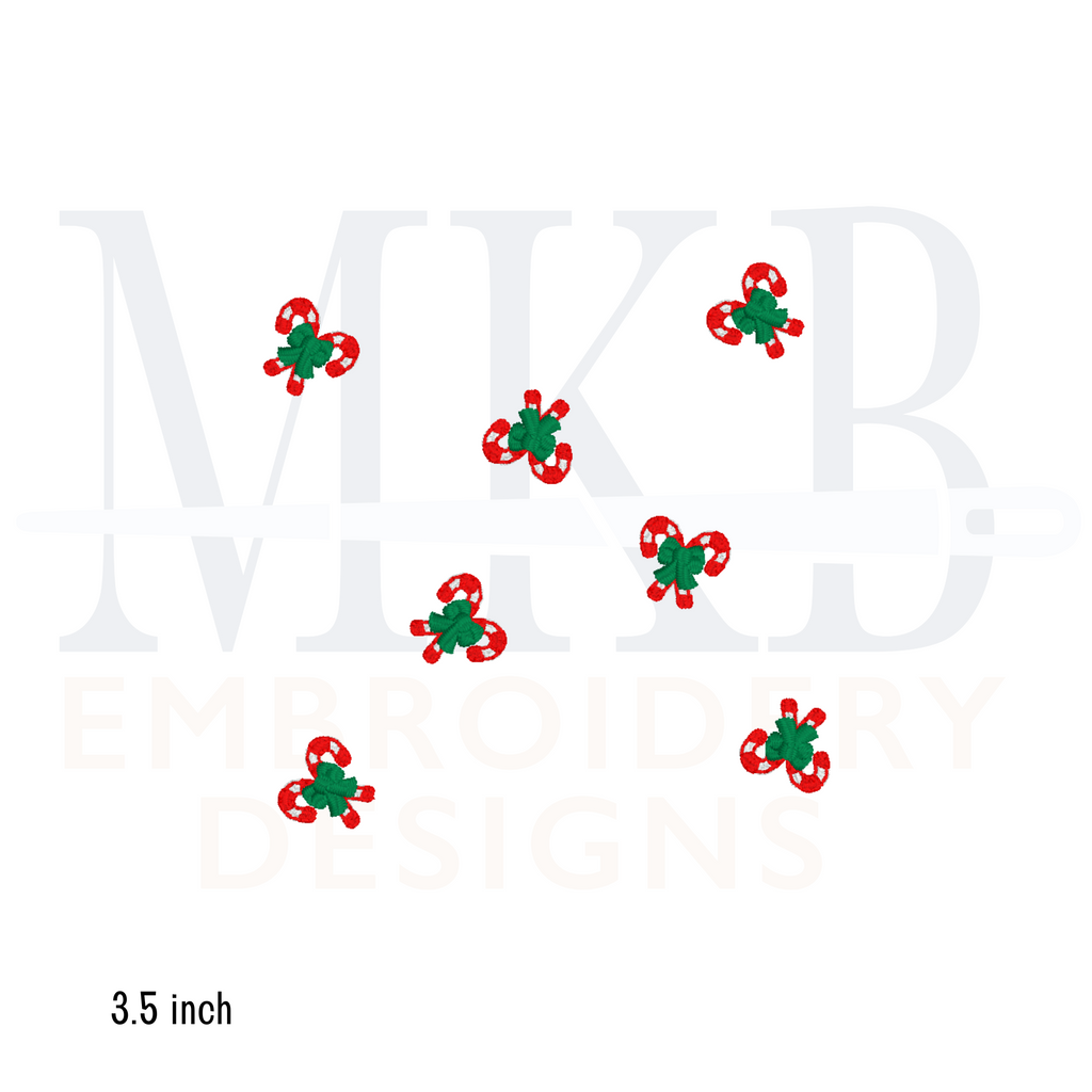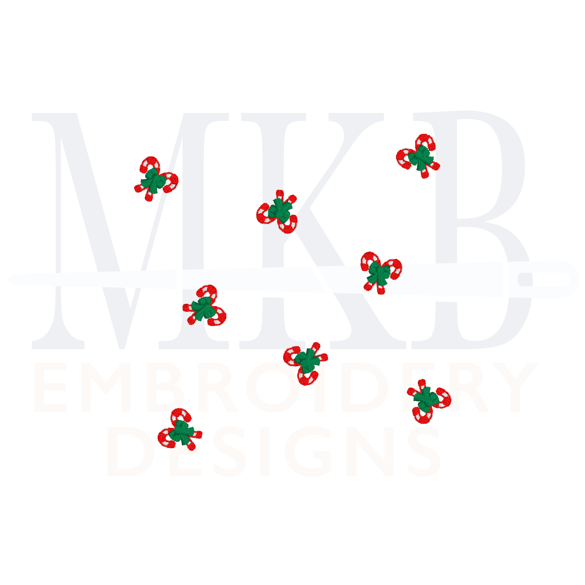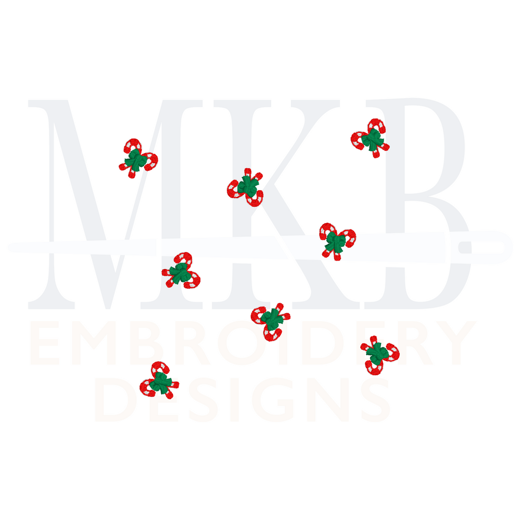 ◾ Candy Canes Crossed with a Bow Scattered for Cocktail Napkins Machine Embroidery Design includes the following arrangement sizes: