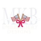 American Flags with Bow Crossed, Light Fill Machine Embroidery Design File
