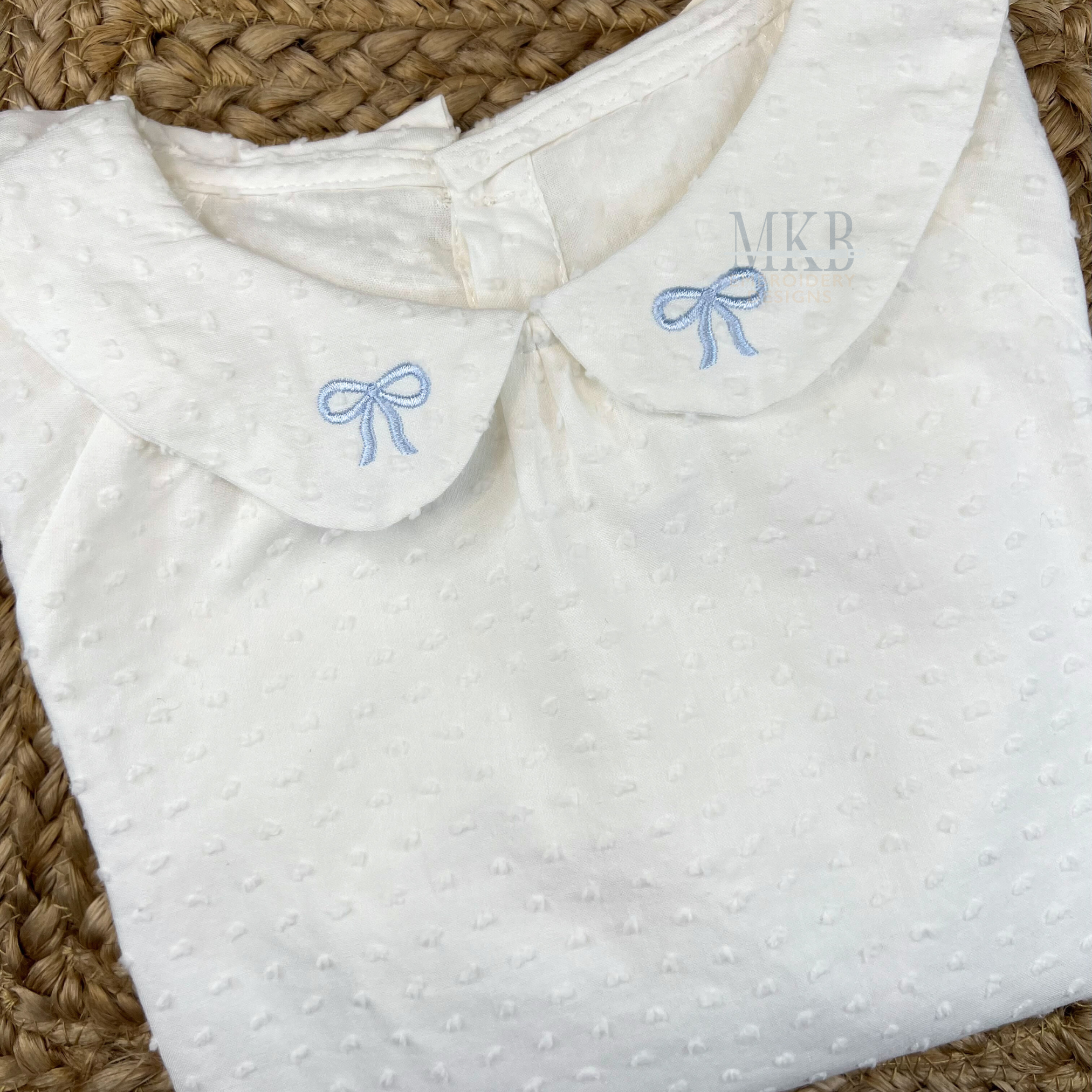 The mini bow ribbon is a single color satin stitch embroidery design. Use this simple and classic bow with tails embroidery design for garments, guest linens, home decor, hostess gifts, tote bags, and more. Makes for a sweet baby monogram, Christmas bow, big sister bow, birthday bow, and more! Each design has been tested for quality stitching.