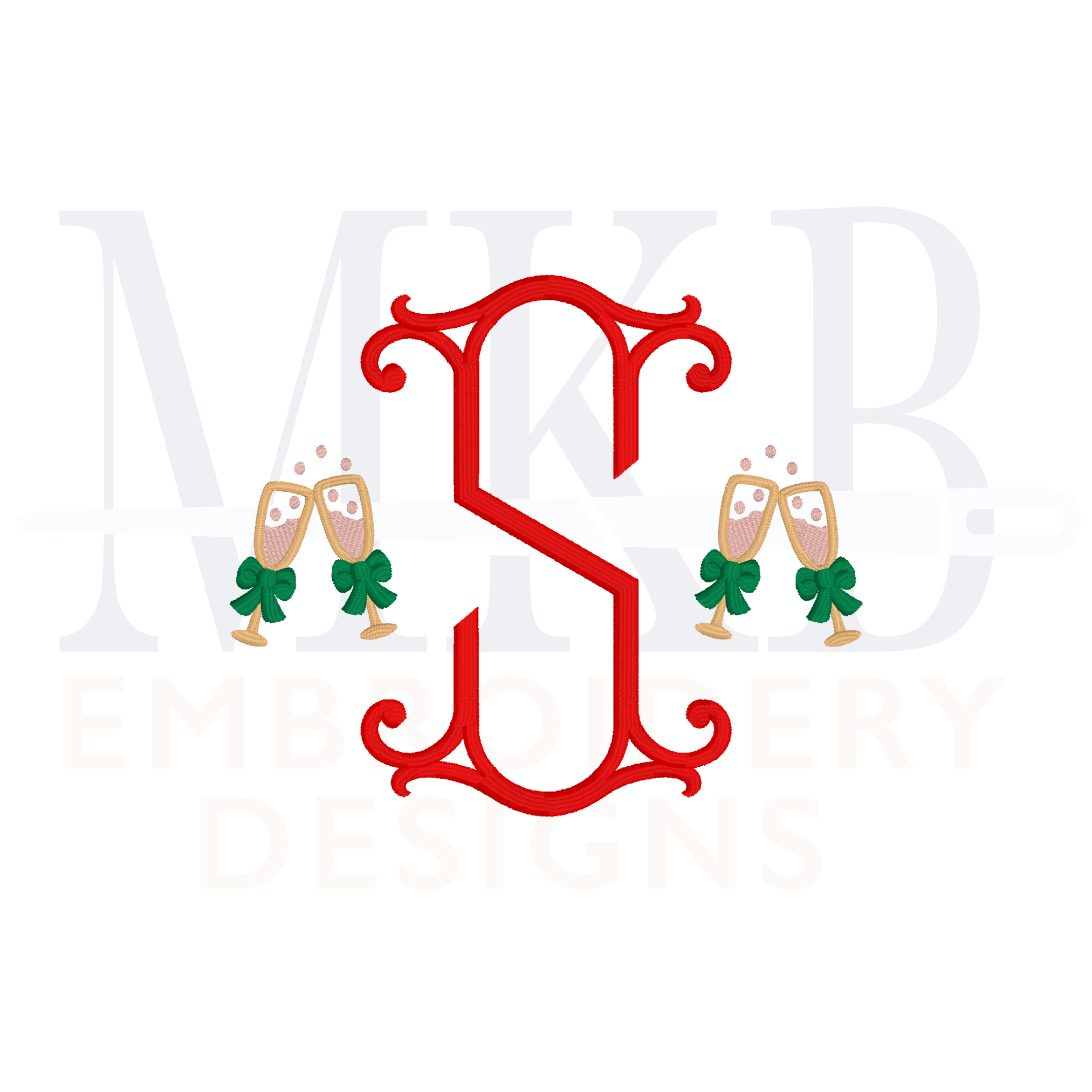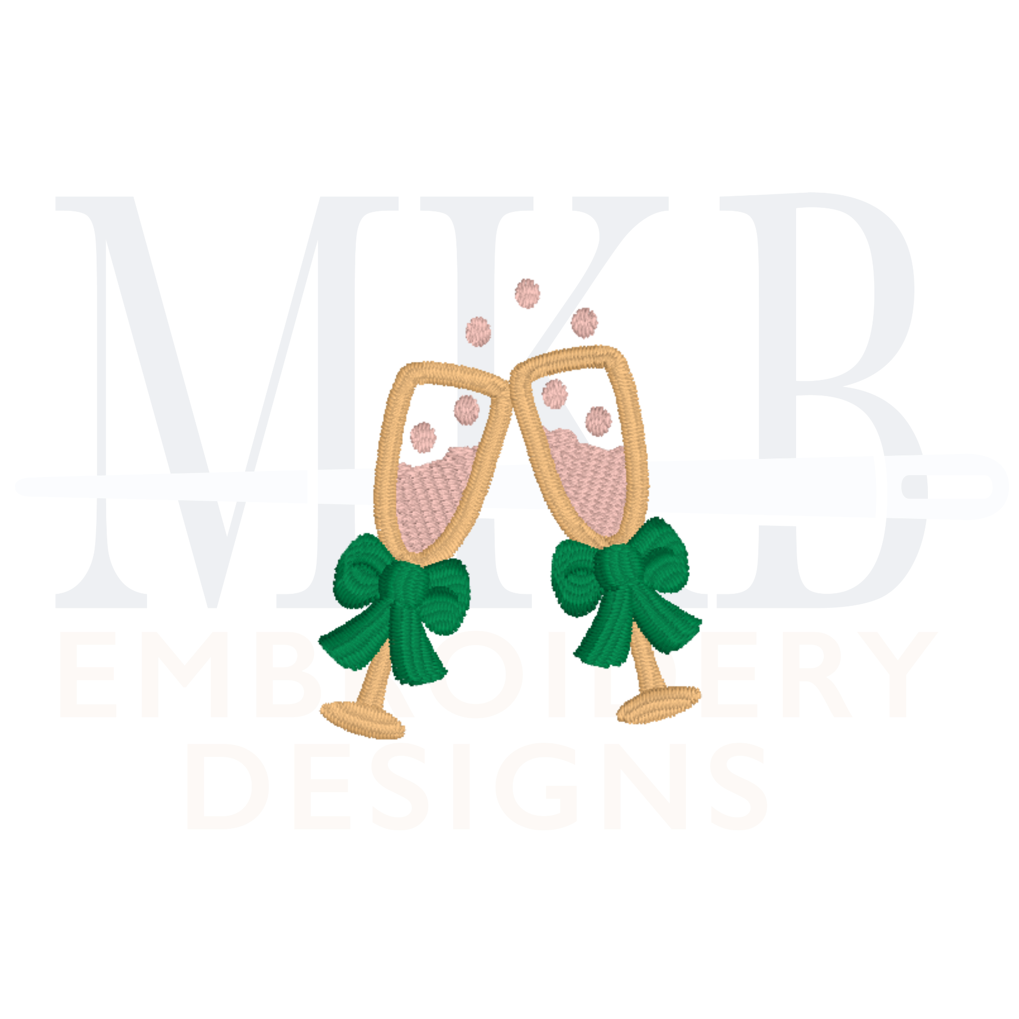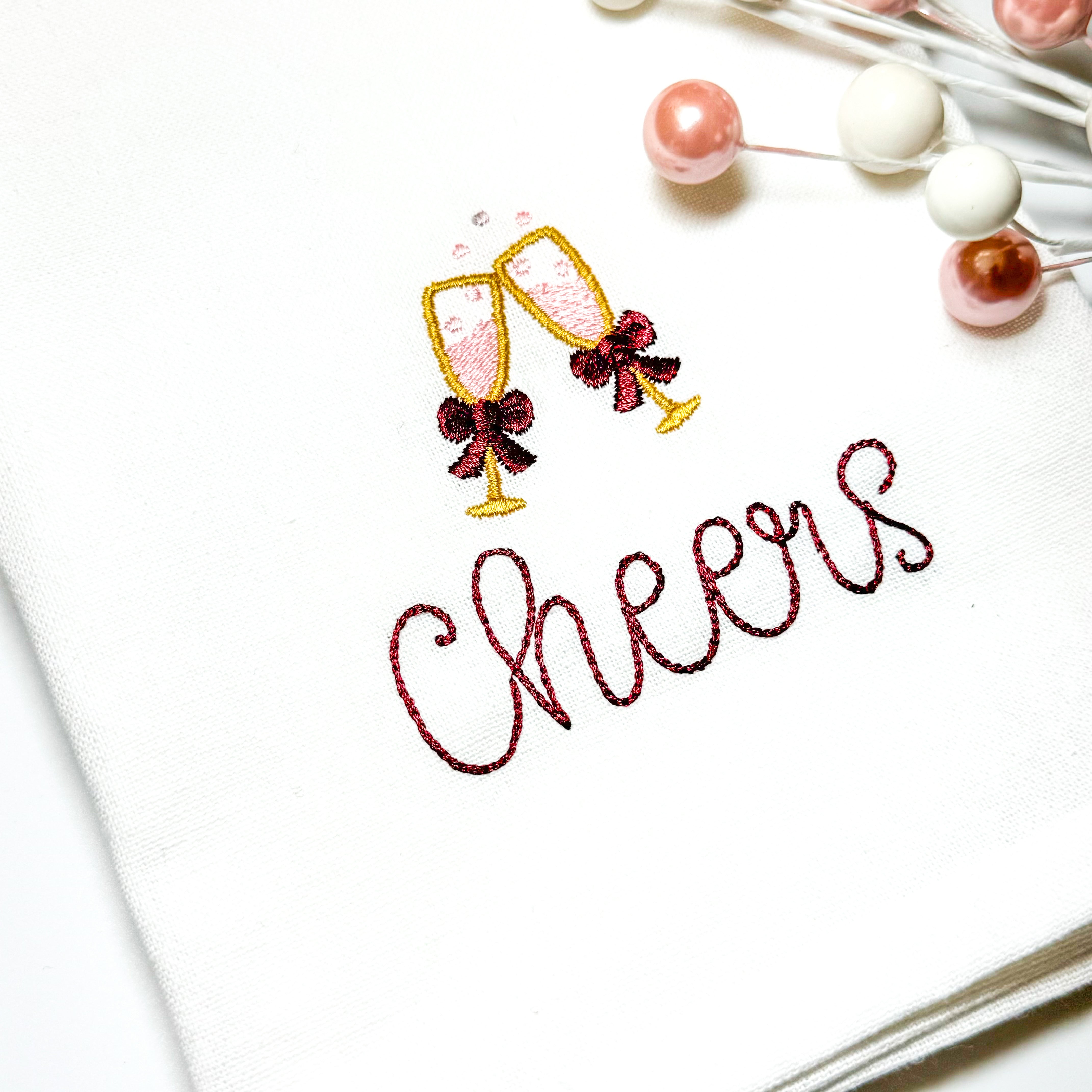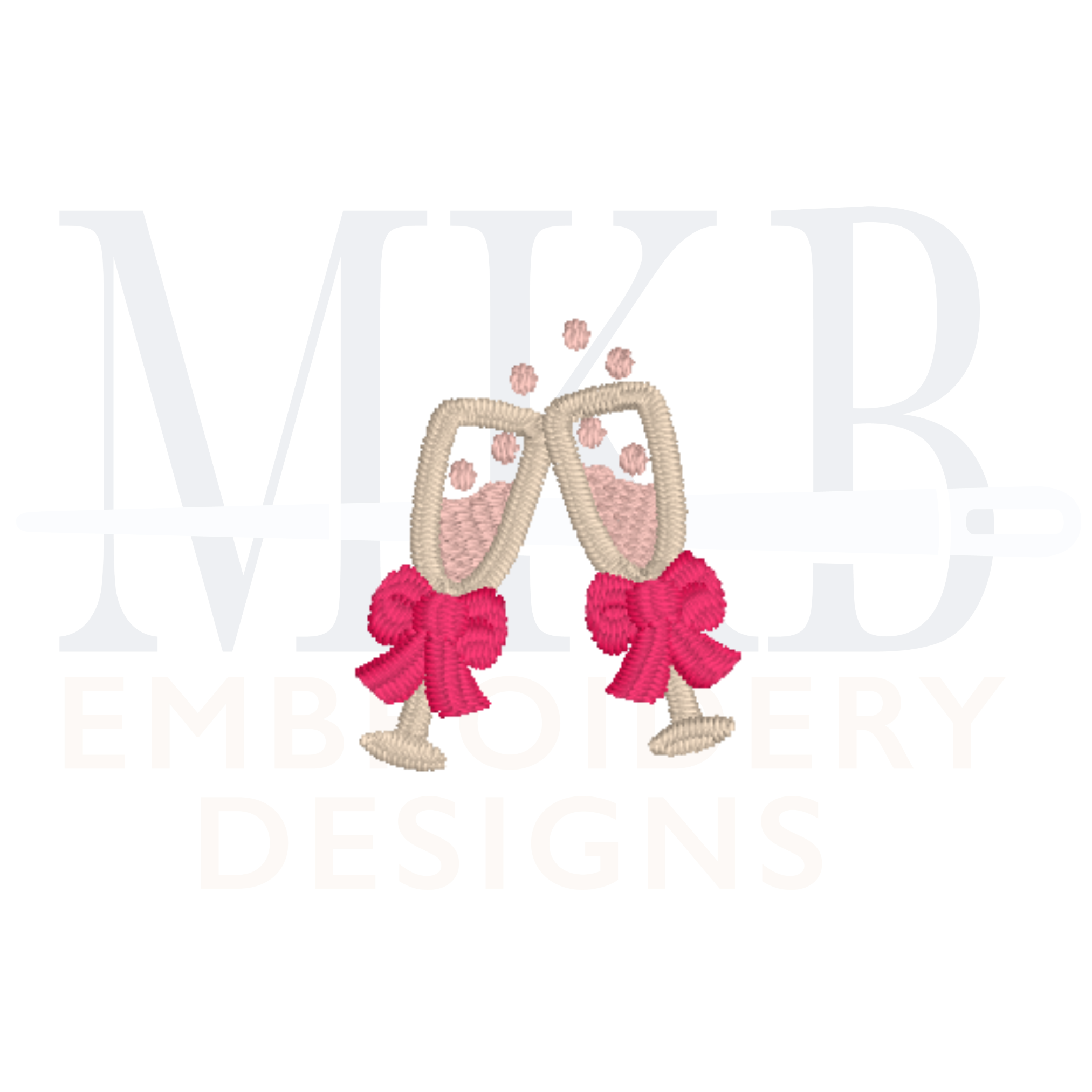 Our mini champagne glasses with a bow are a perfect accent for a name or monogram. Hand drawn and digitized in a satin stitch, the champagne flutes are versatile for many celebrations. Use this mini champagne embroidery design to embellish garments such as t-shirts, pullovers, linens, accessories, and more. Perfect for weddings and anniversaries, birthdays, Christmas and holiday festivities, New Years cheers, bridal luncheons, or any celebration themed embroidery projects. Each design has been tested for quality stitching.