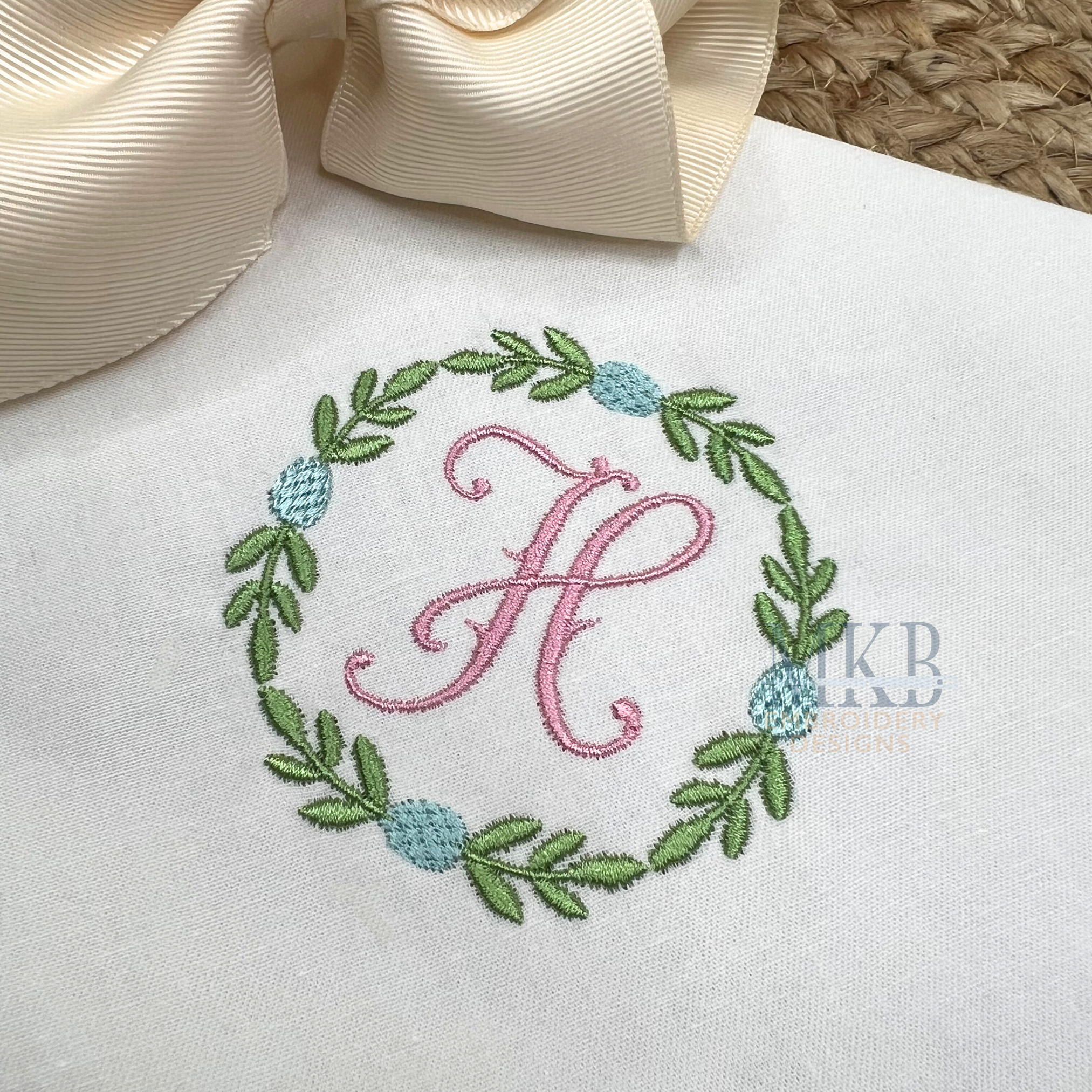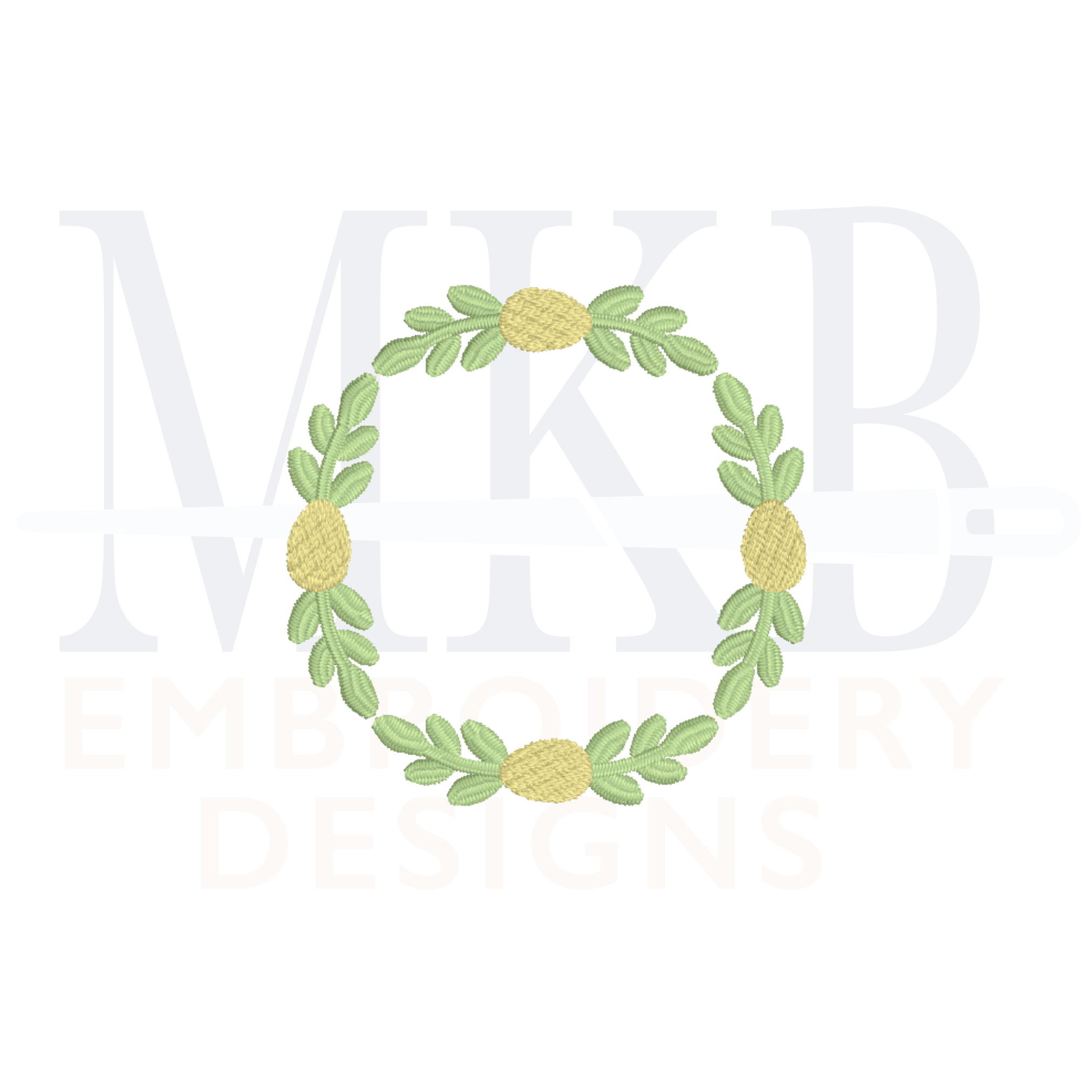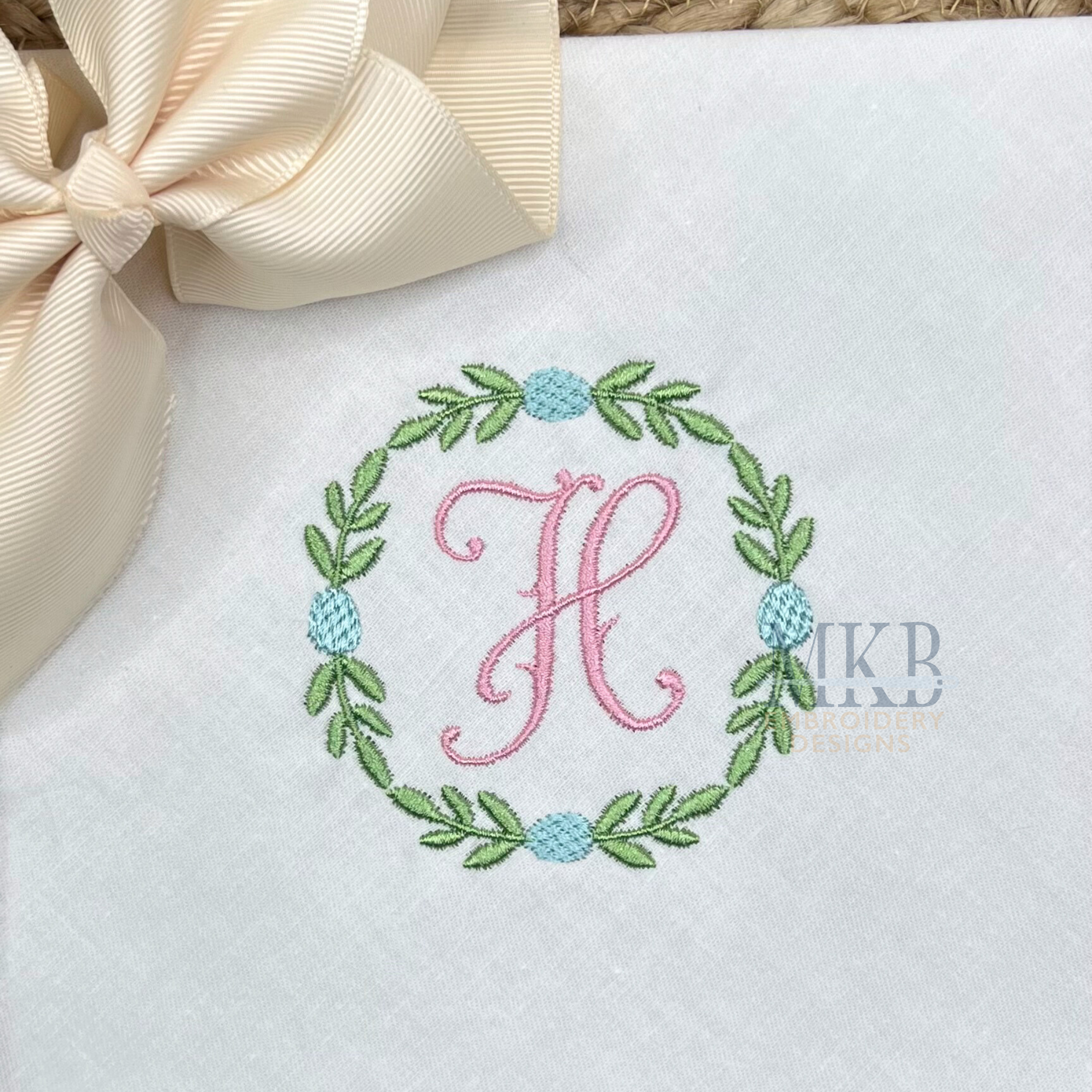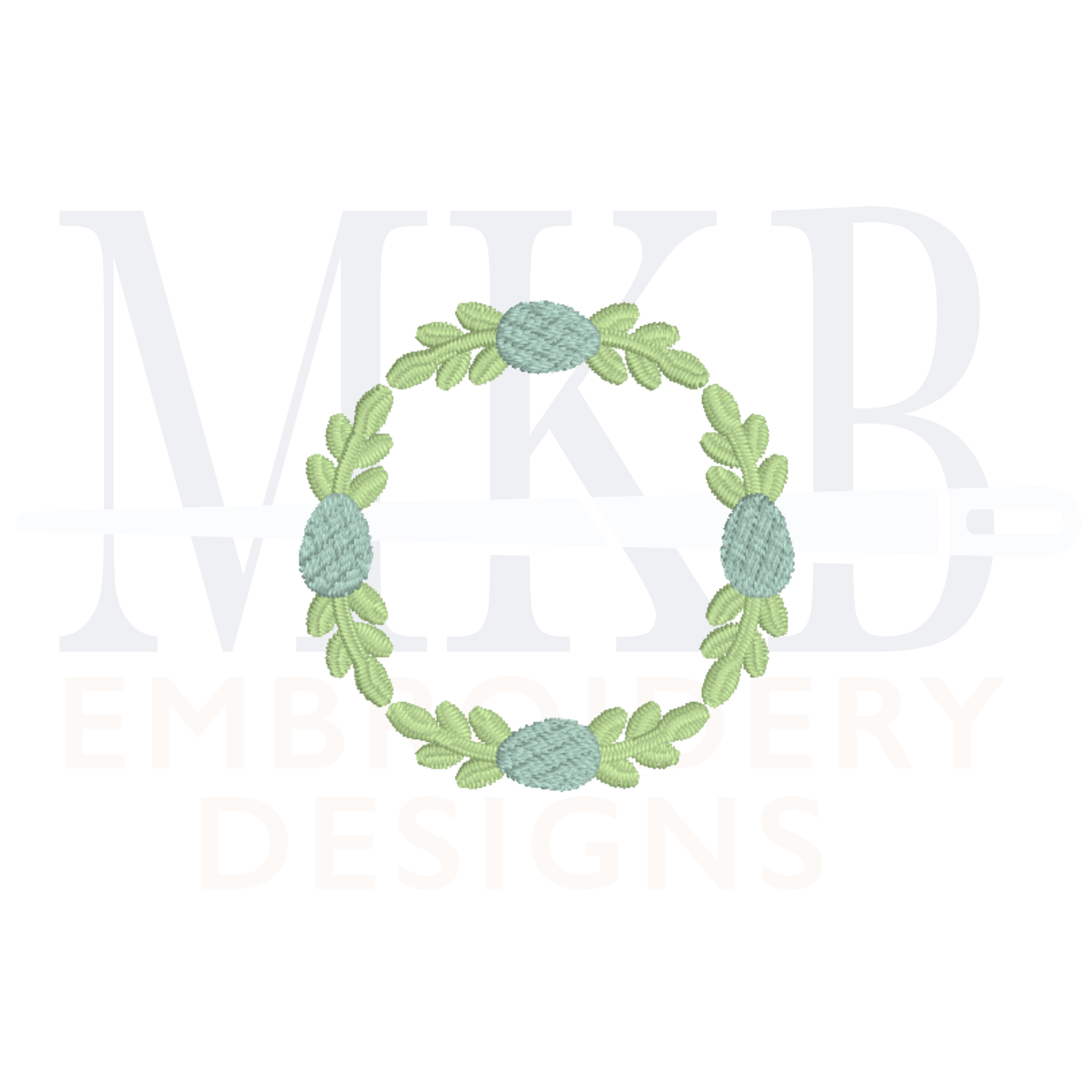 The simple Easter laurel frame in mini sizes is perfect for Spring monogram projects. The laurel monogram font frame includes greenery in a satin stitch and the eggs are in a textured fill stitch. The laurel section is designed to run all as one stitch to help keep the machine running. Perfect for Easter or Spring gatherings, Easter brunch, hostess gifts, Easter linens, Easter decor, garments, or any Easter themed celebration. Each of our designs have been tested for quality stitching.