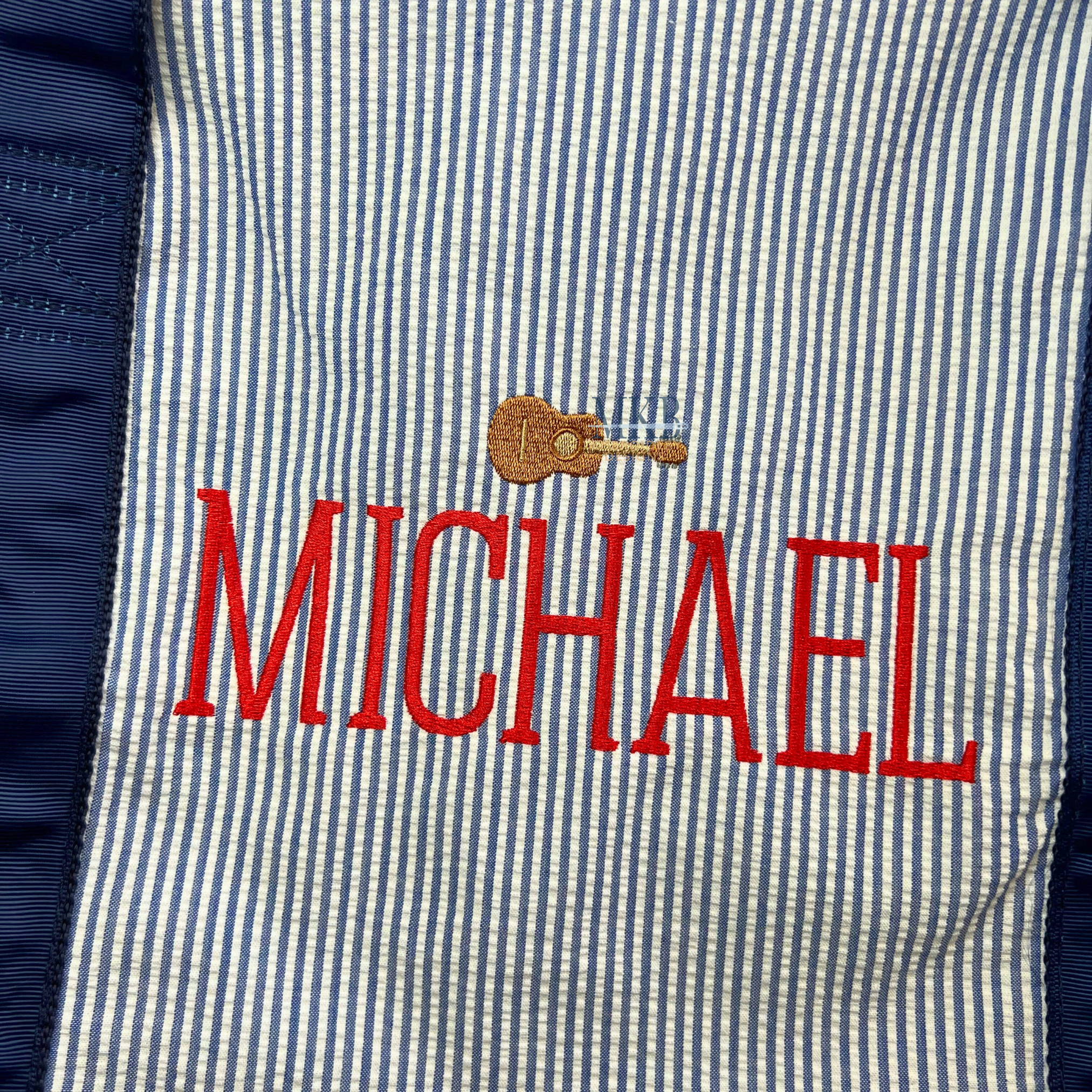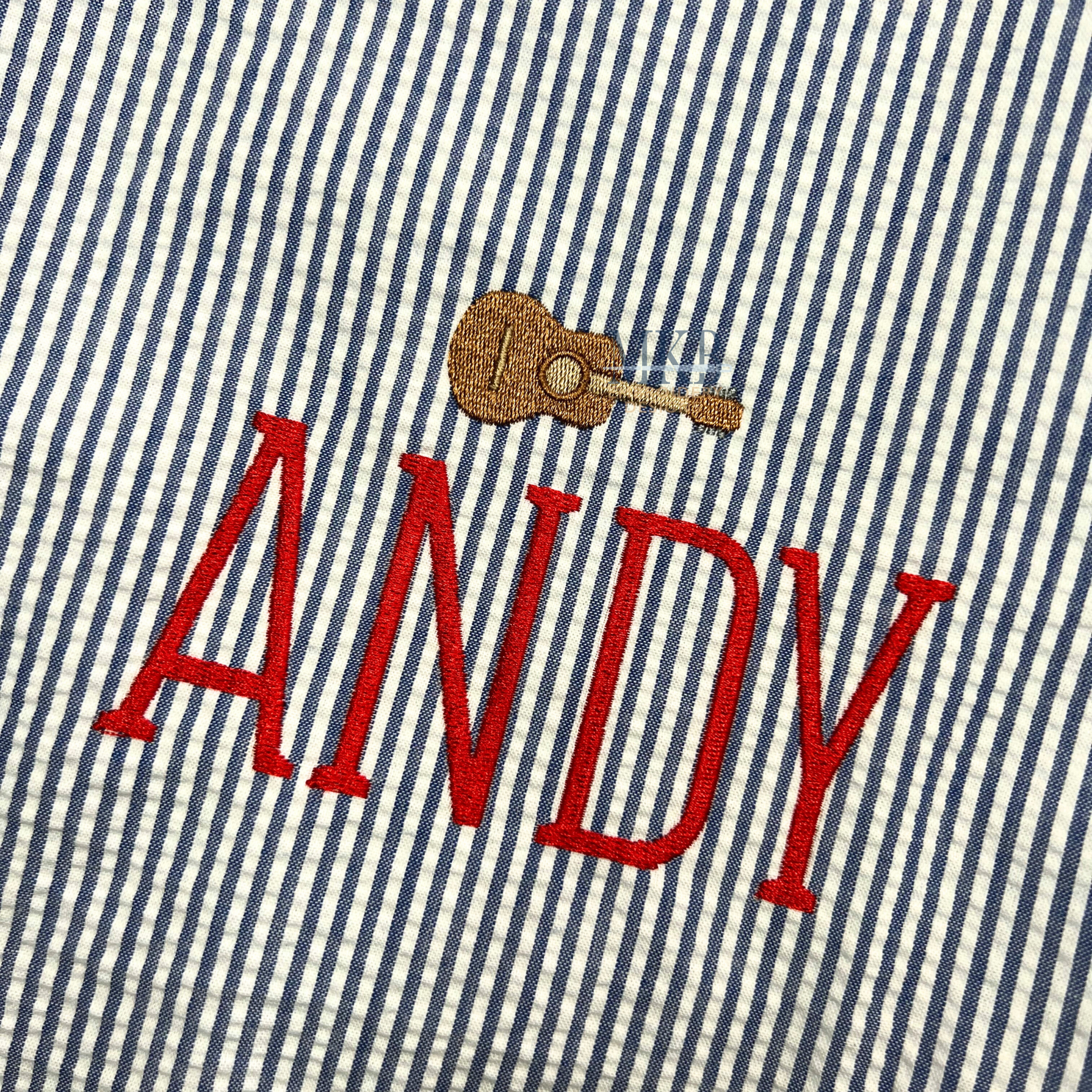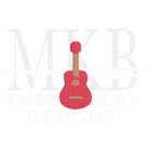 The mini guitar embroidery design is a perfect add-on to a monogram or name. Use this musical instrument embroidery design to embellish garments such as t-shirts, tees, and sweatshirts. The mini guitar works great on tote bags, zip bags, guest towels, dish towels, gifts, and other accessories. Each of our designs have been tested for quality stitching.