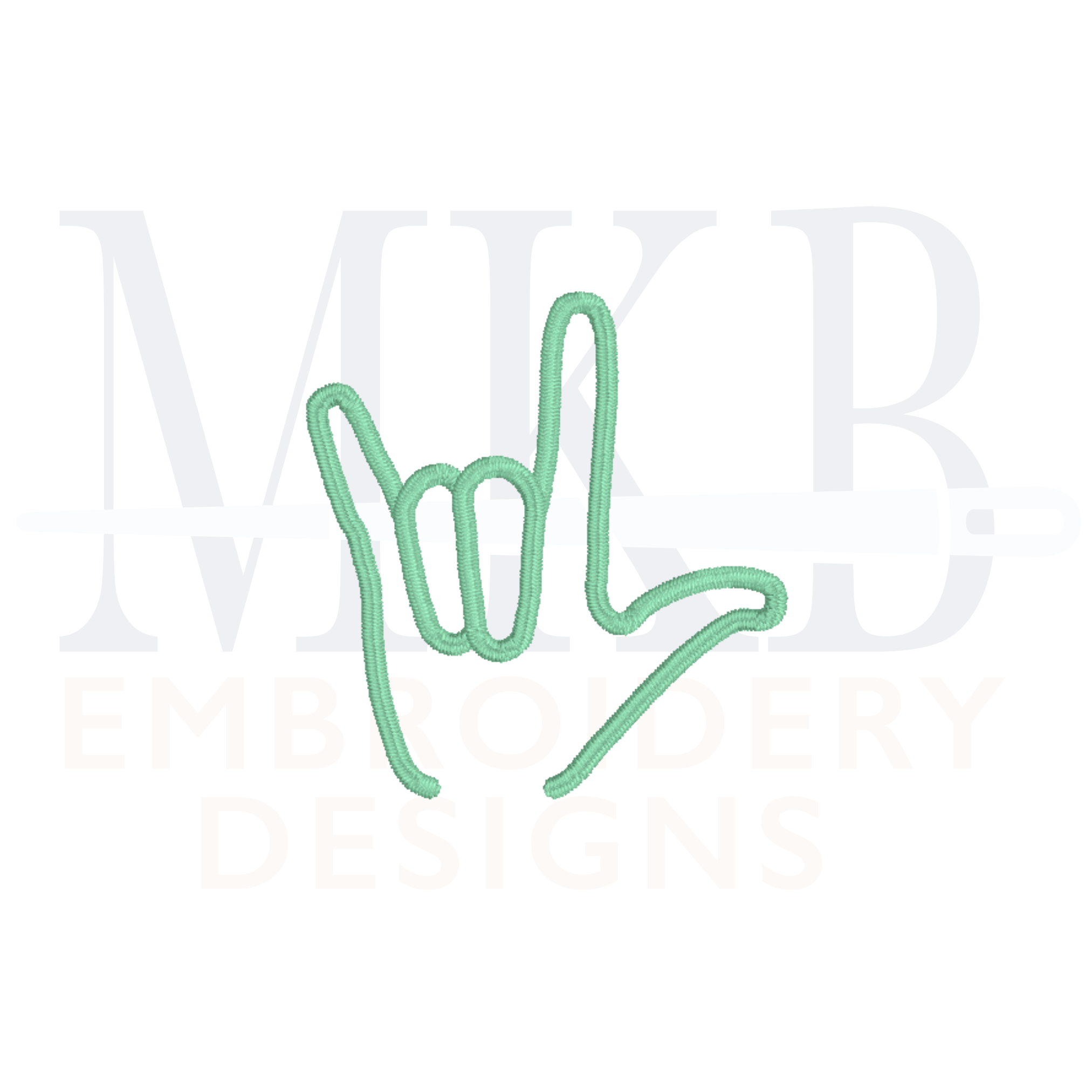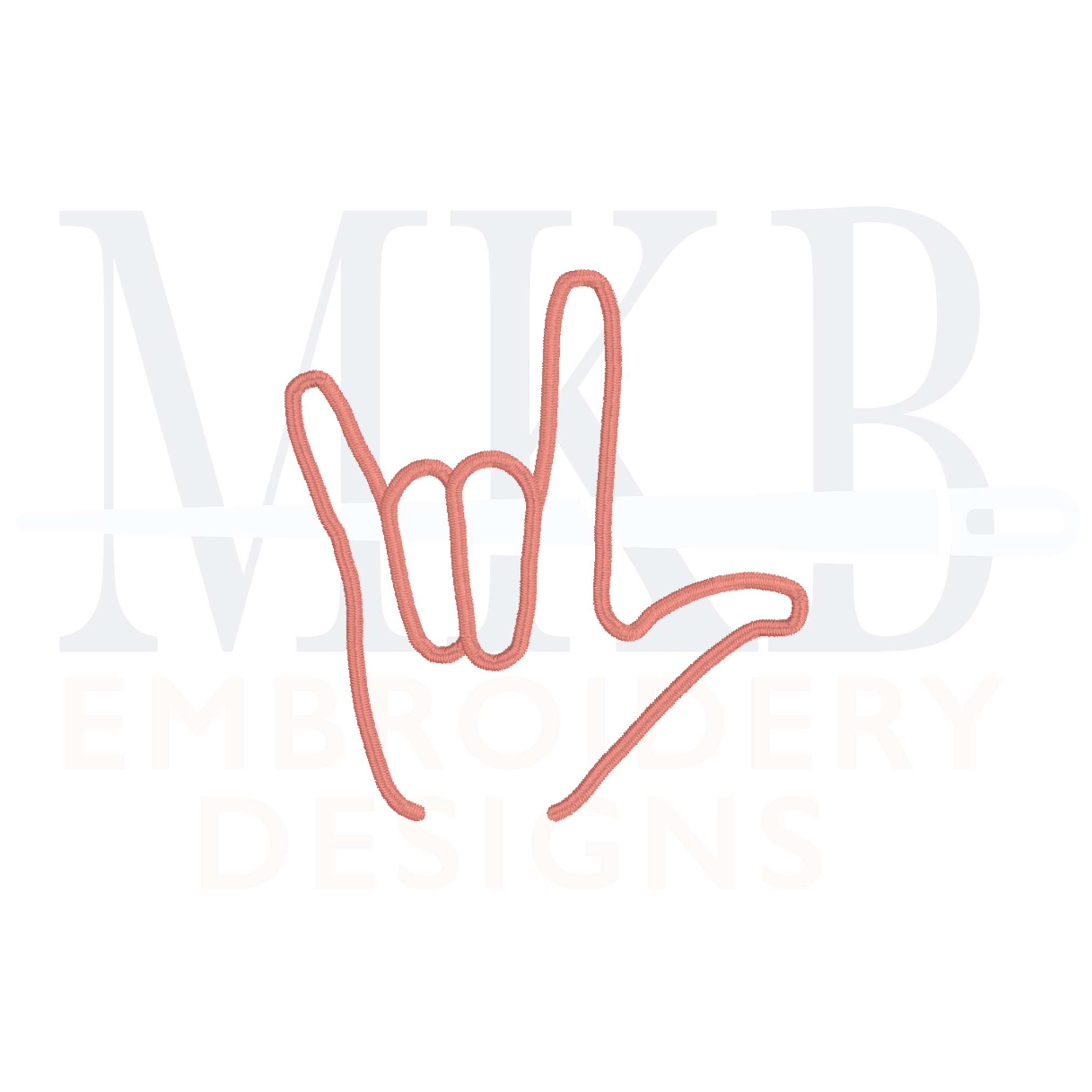 I Love You Hand Sign, Satin Stitch Machine Embroidery Design File