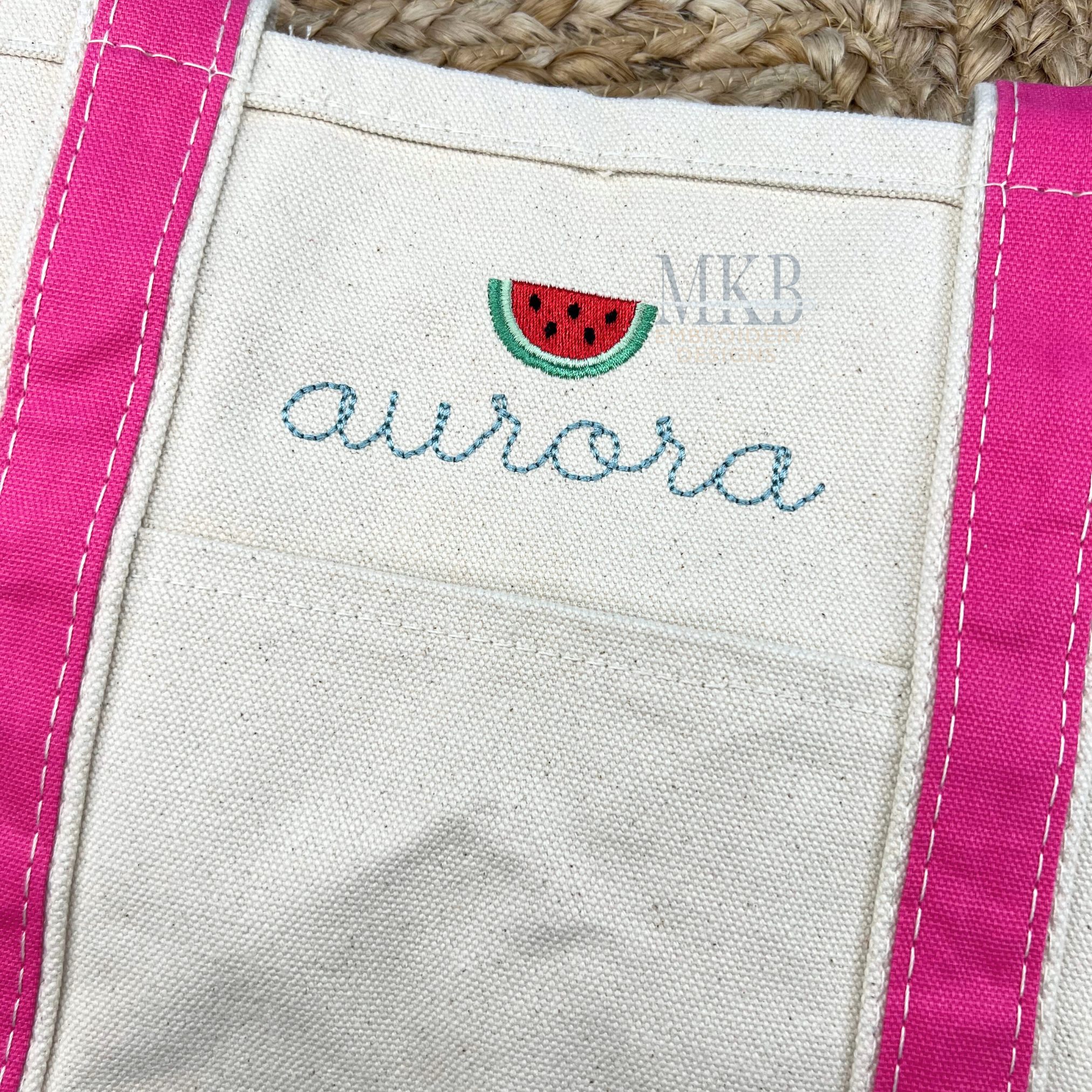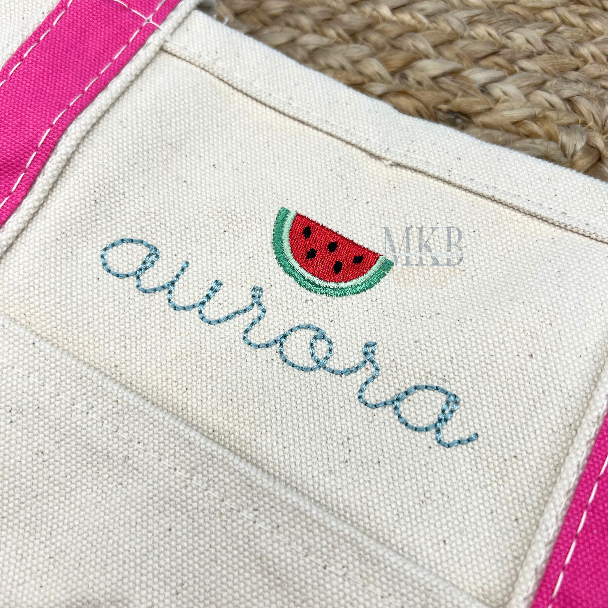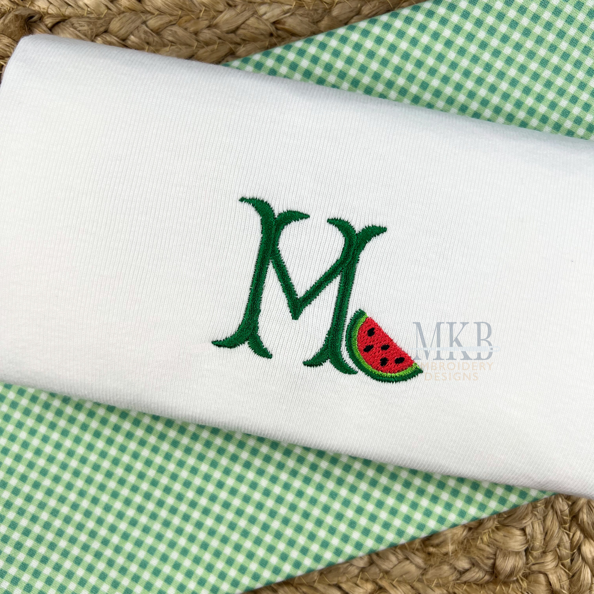 The mini watermelon embroidery design is a four color embroidery design with fill and satin stitches. The cute melon embroidery design includes three sizes. Perfect for tees, golf shirts, sweatshirts, t-shirts, bodysuits, burp towels, tote bags and more.
