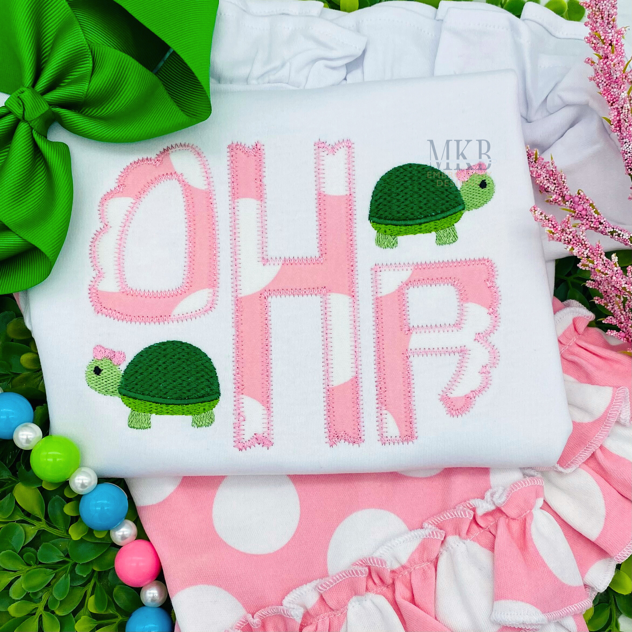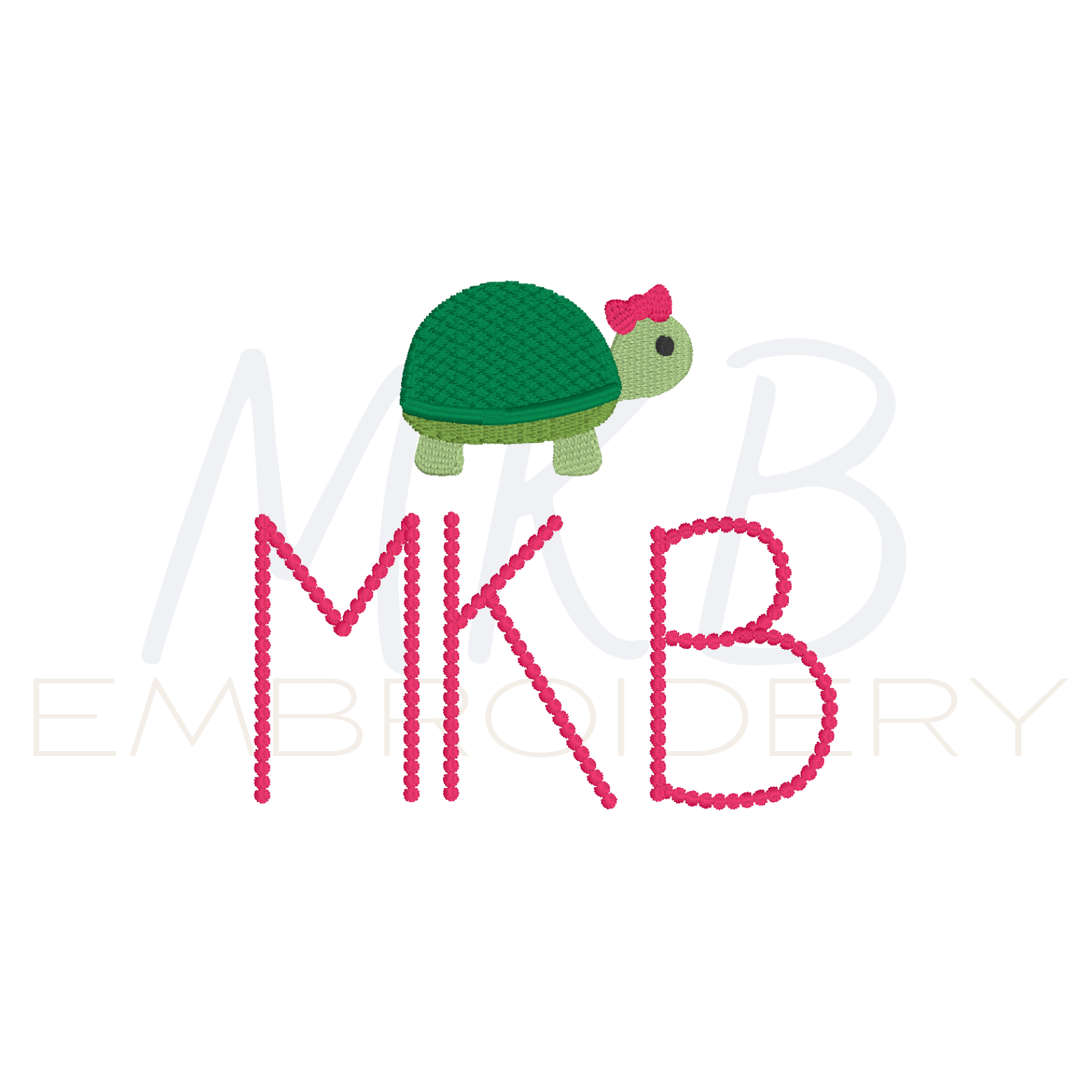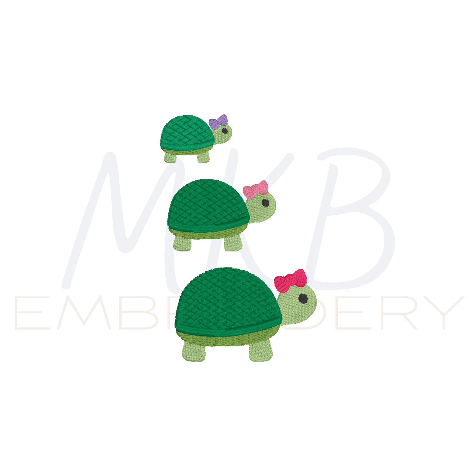 Turtle Embroidery Design, Girl Turtle with a Bow Machine Embroidery Design File