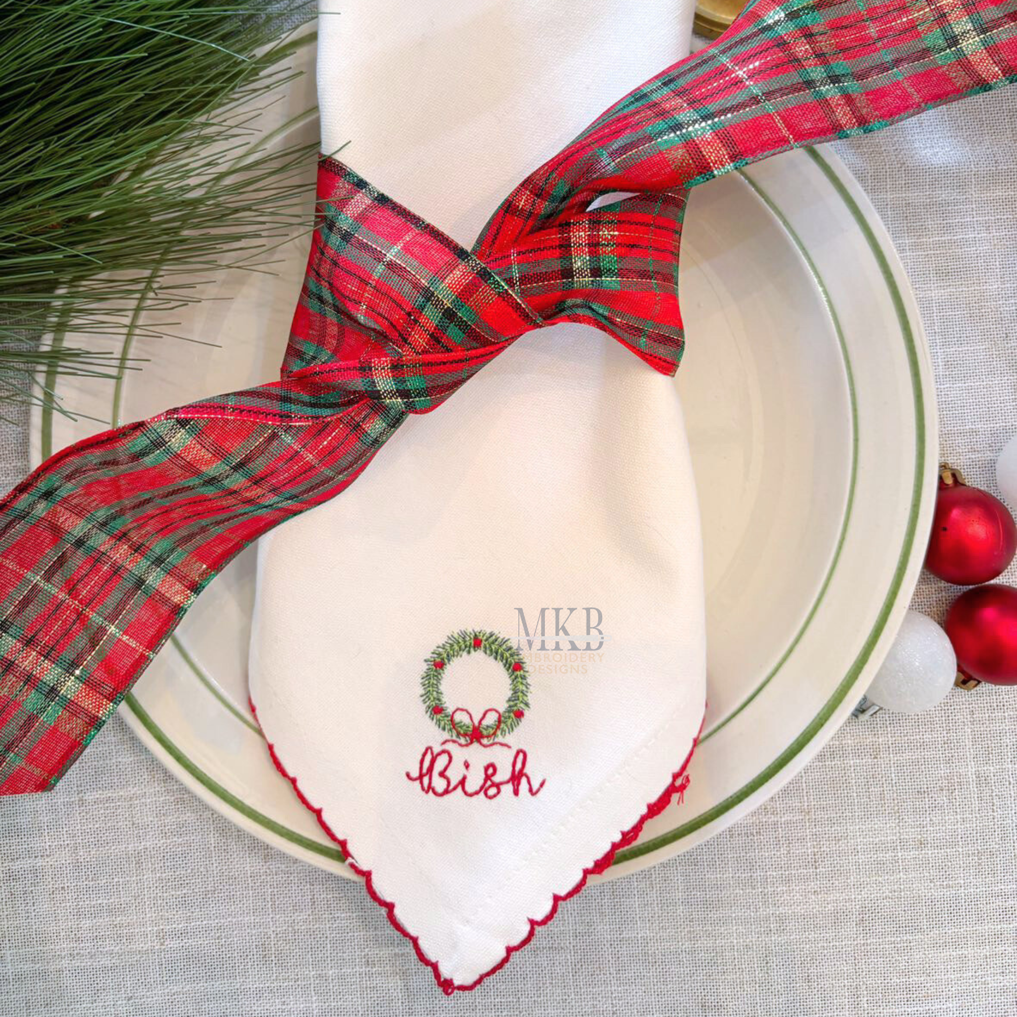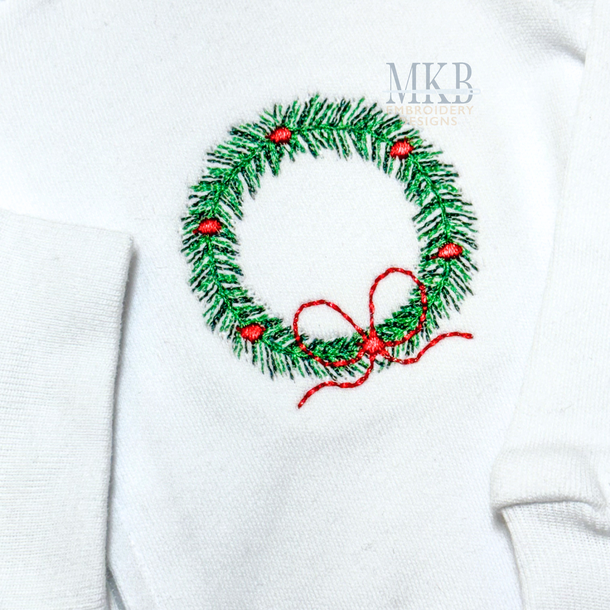 Wreath with a Satin Stitch Bow Mini Embroidery Design