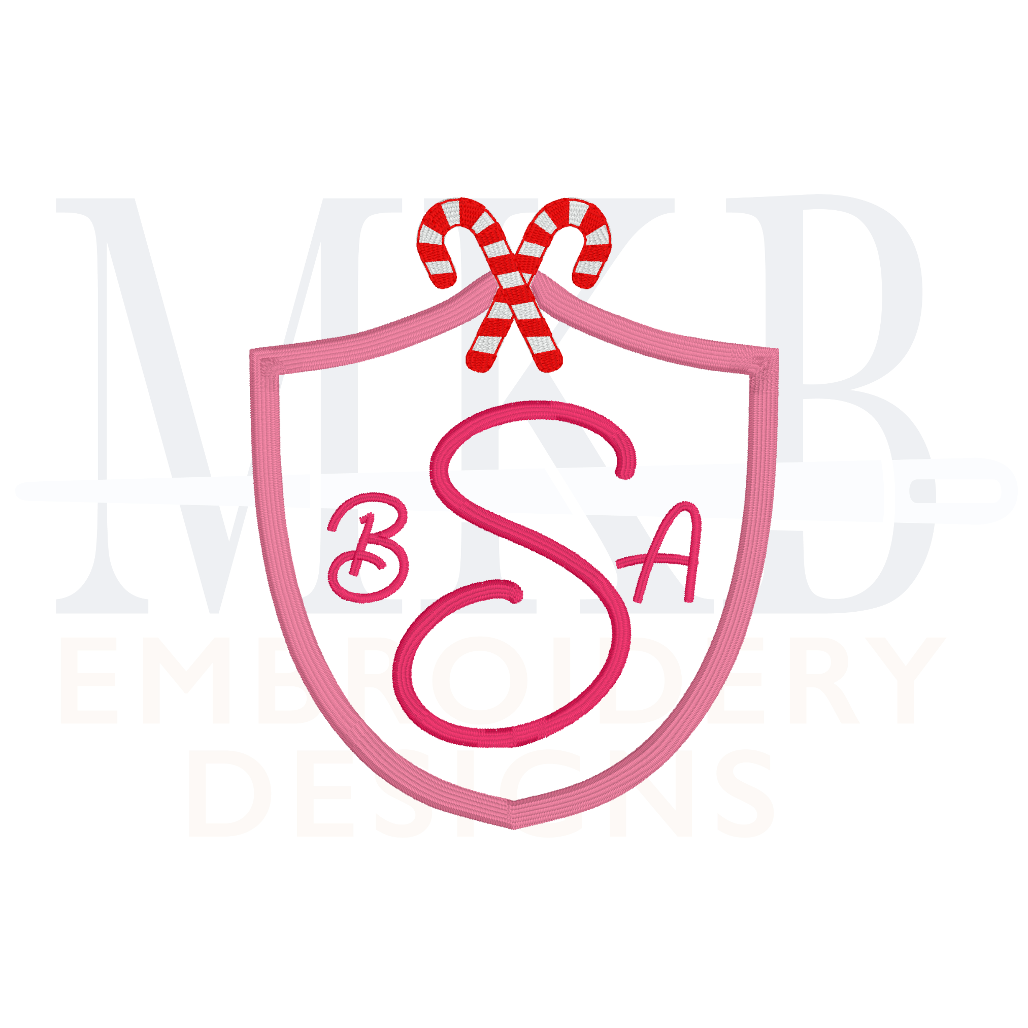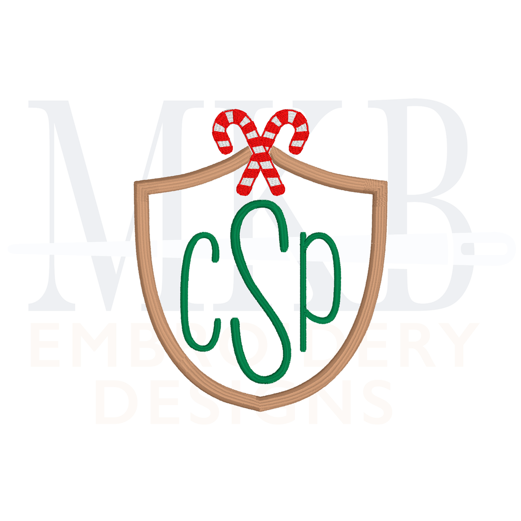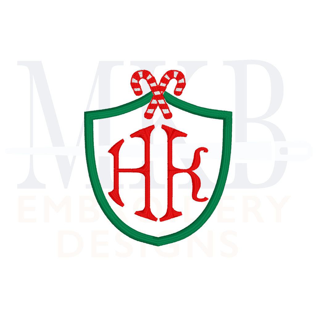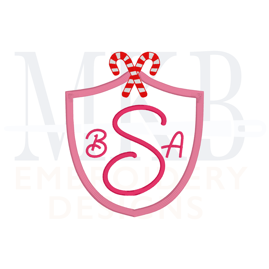 Candy Canes Crossed Simple Crest Machine Embroidery Design File