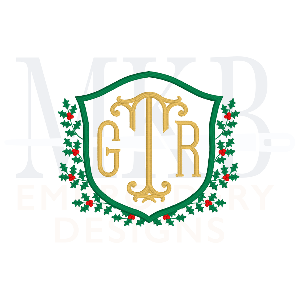 The holly leaf and berry crest is a three color satin and bean stitch stitch embroidery design. There are four sizes included. The three larger sizes have both a simple satin and a textured satin holly leaf version. There is a total of seven files included with the design. The Christmas holly embroidery design works great on guest linens, accessories, home decor, Christmas birth banners, holiday festivities, gifts, and more. Each size has been tested for quality stitching.