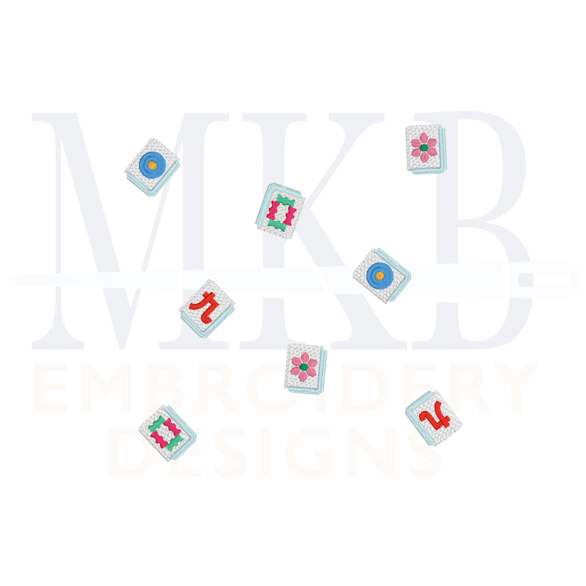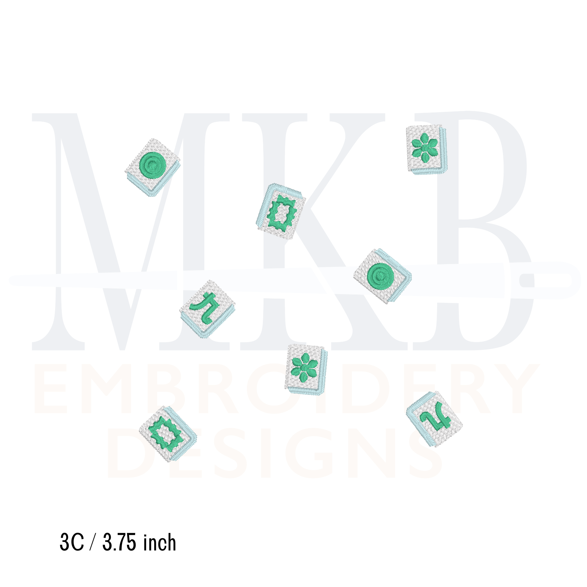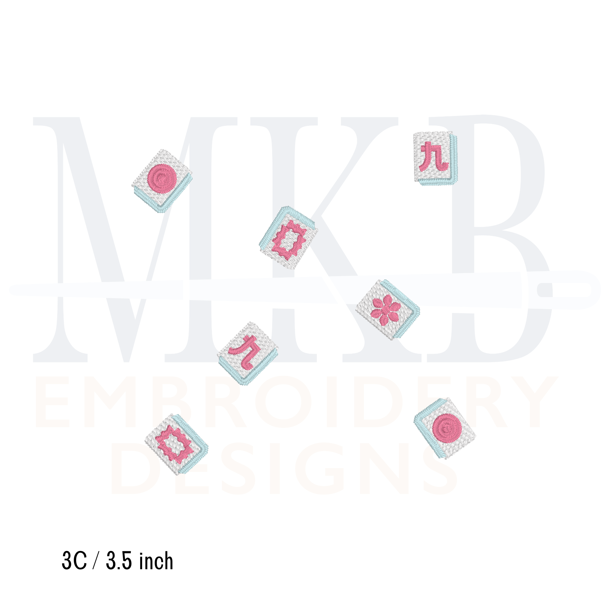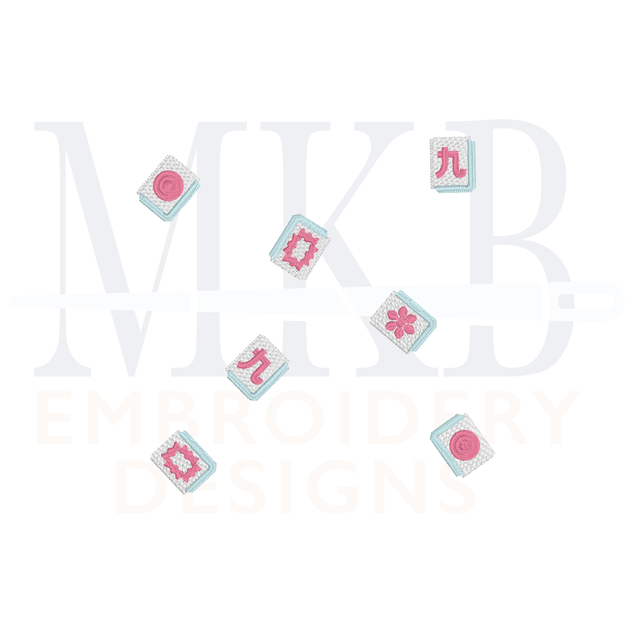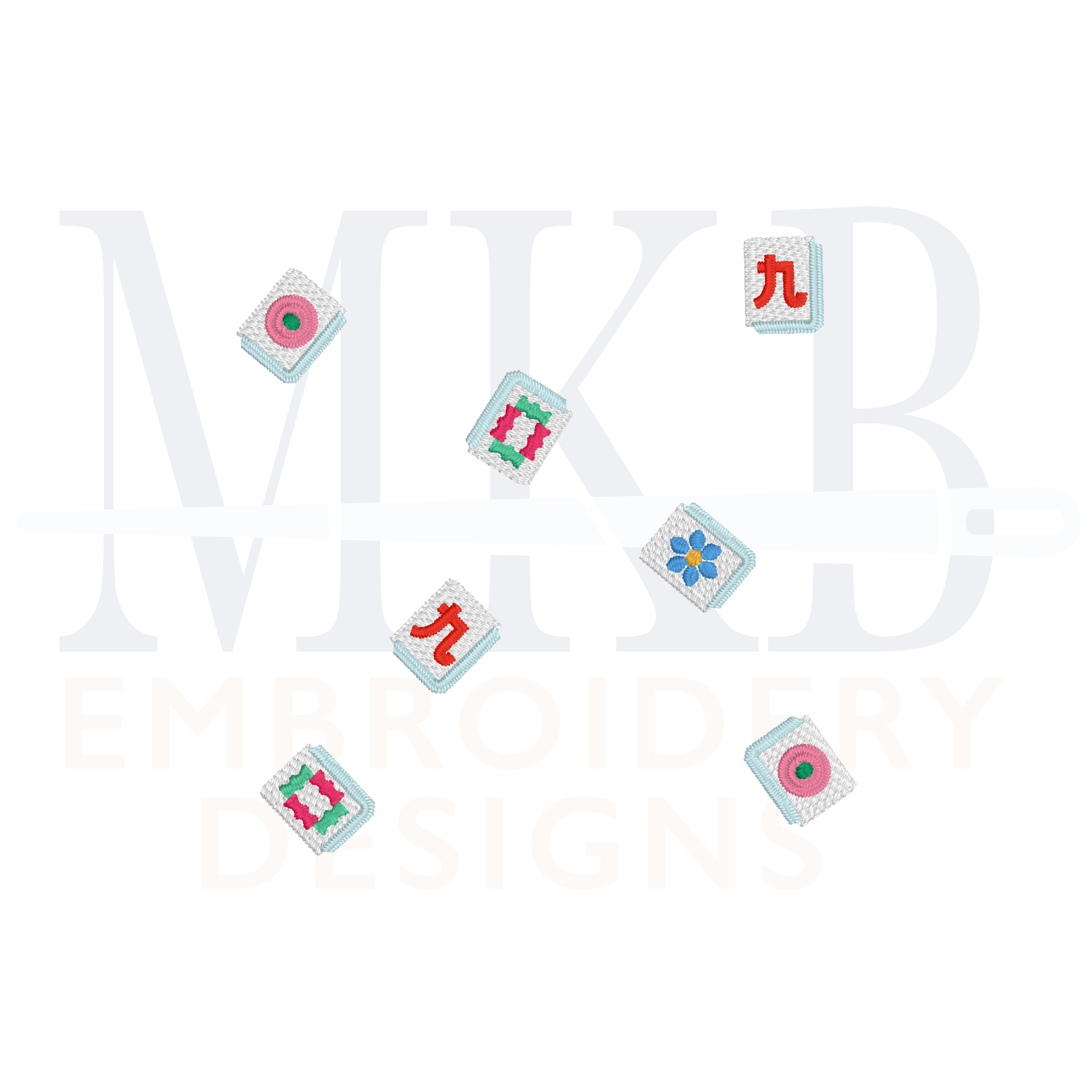 Mahjong Tiles Arranged for Cocktail Napkins Embroidery Design