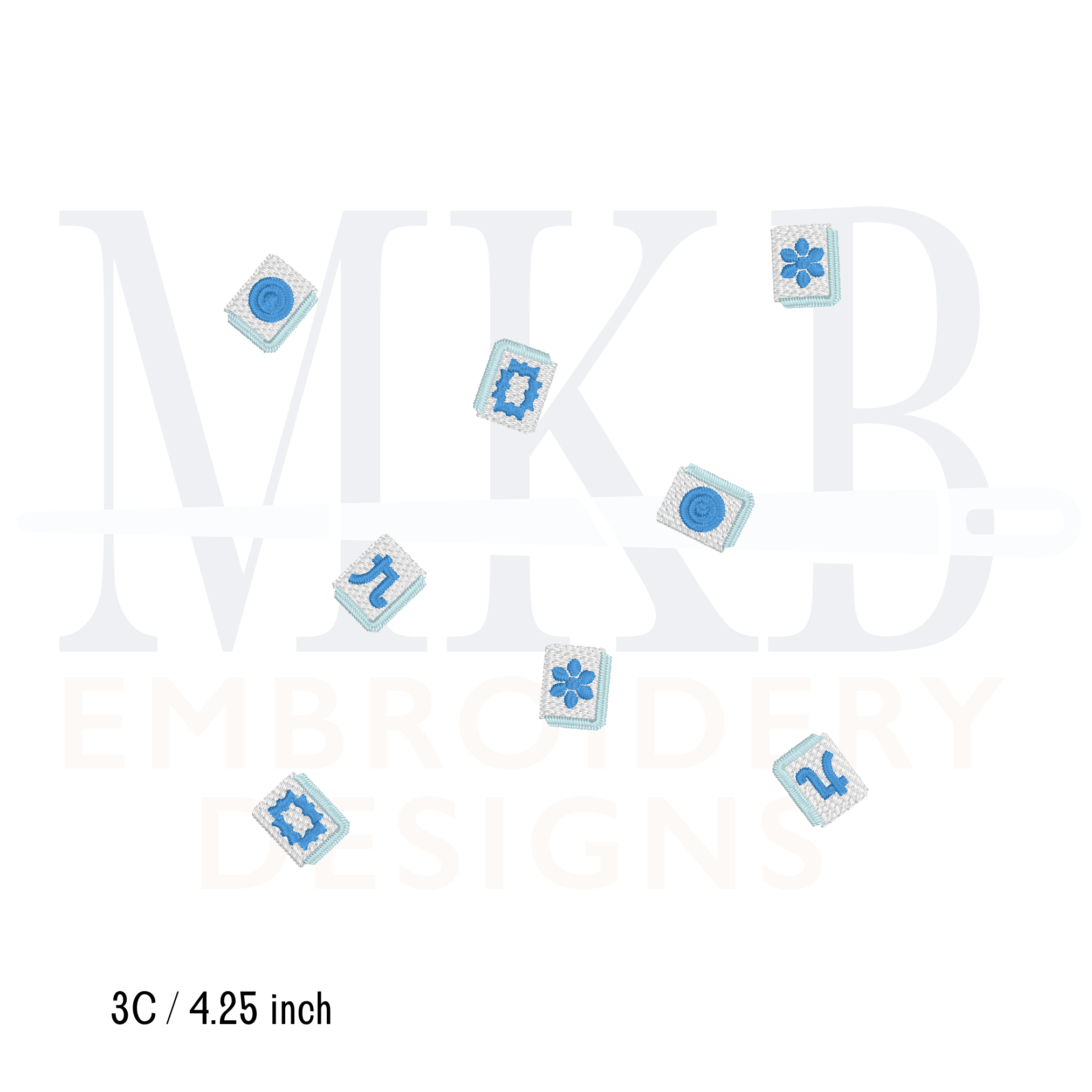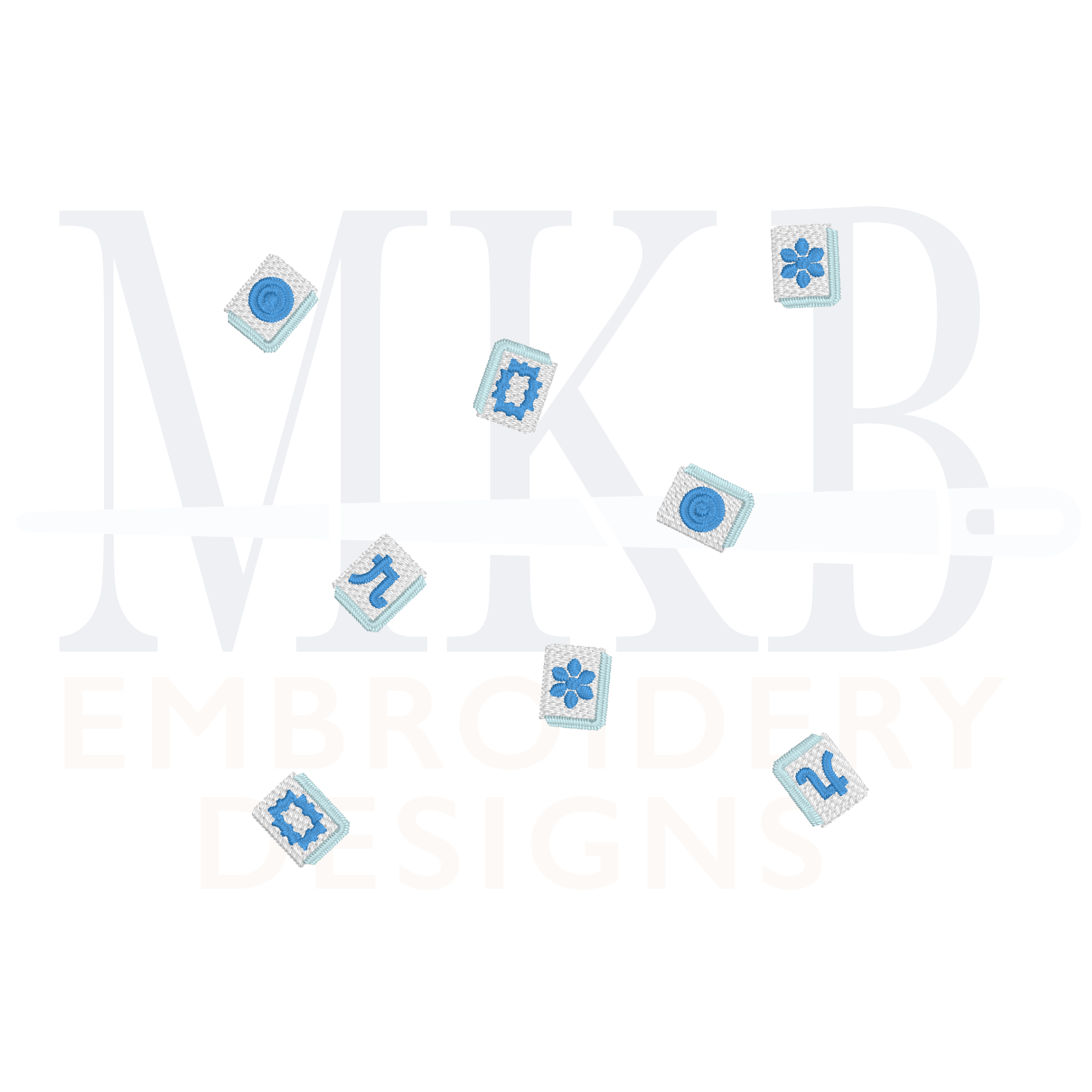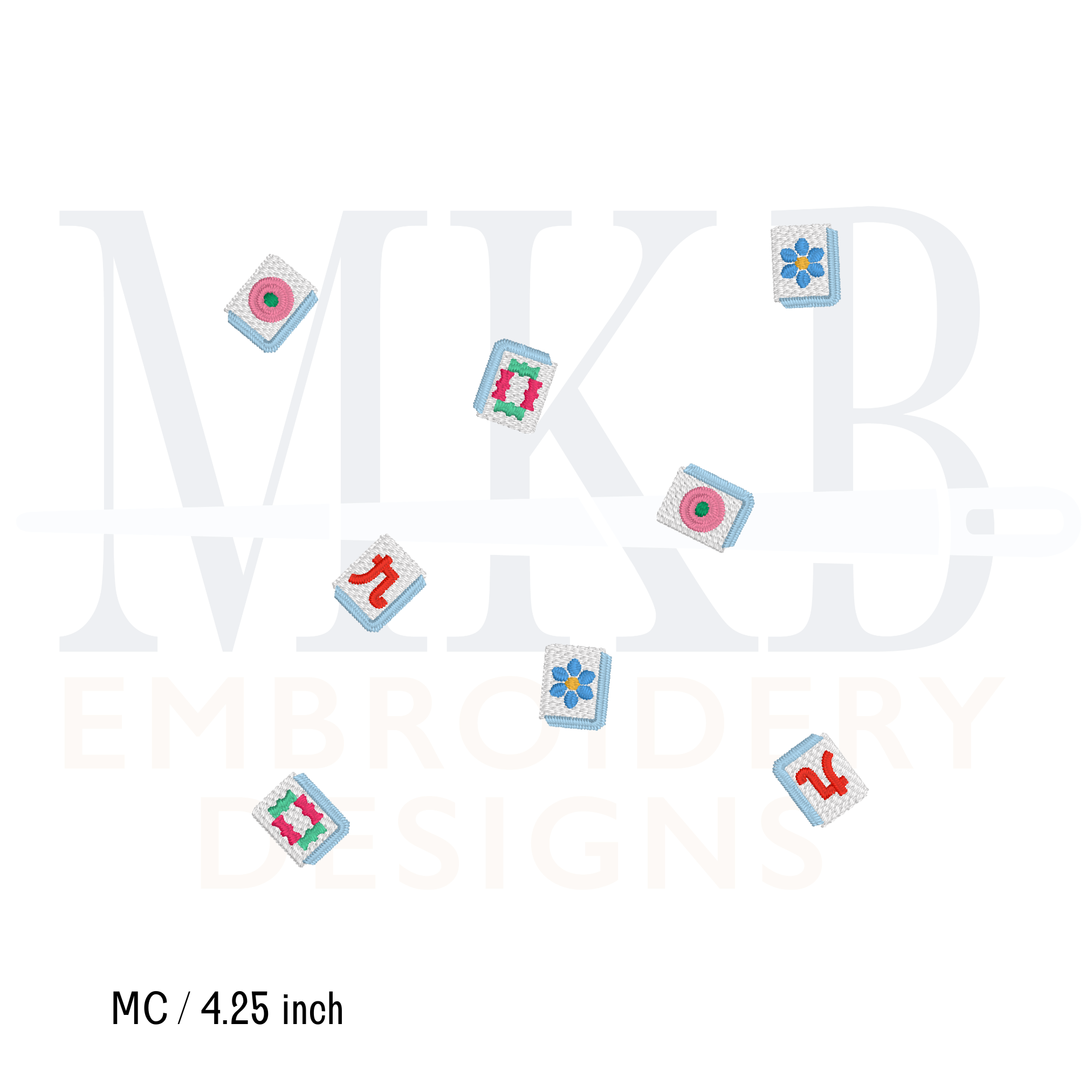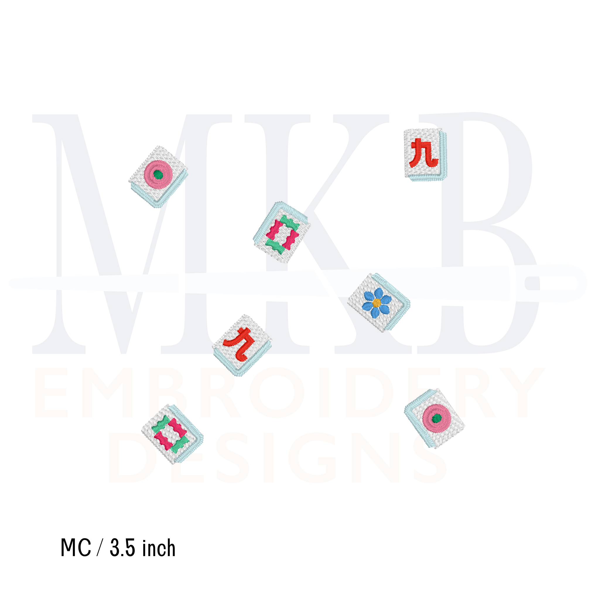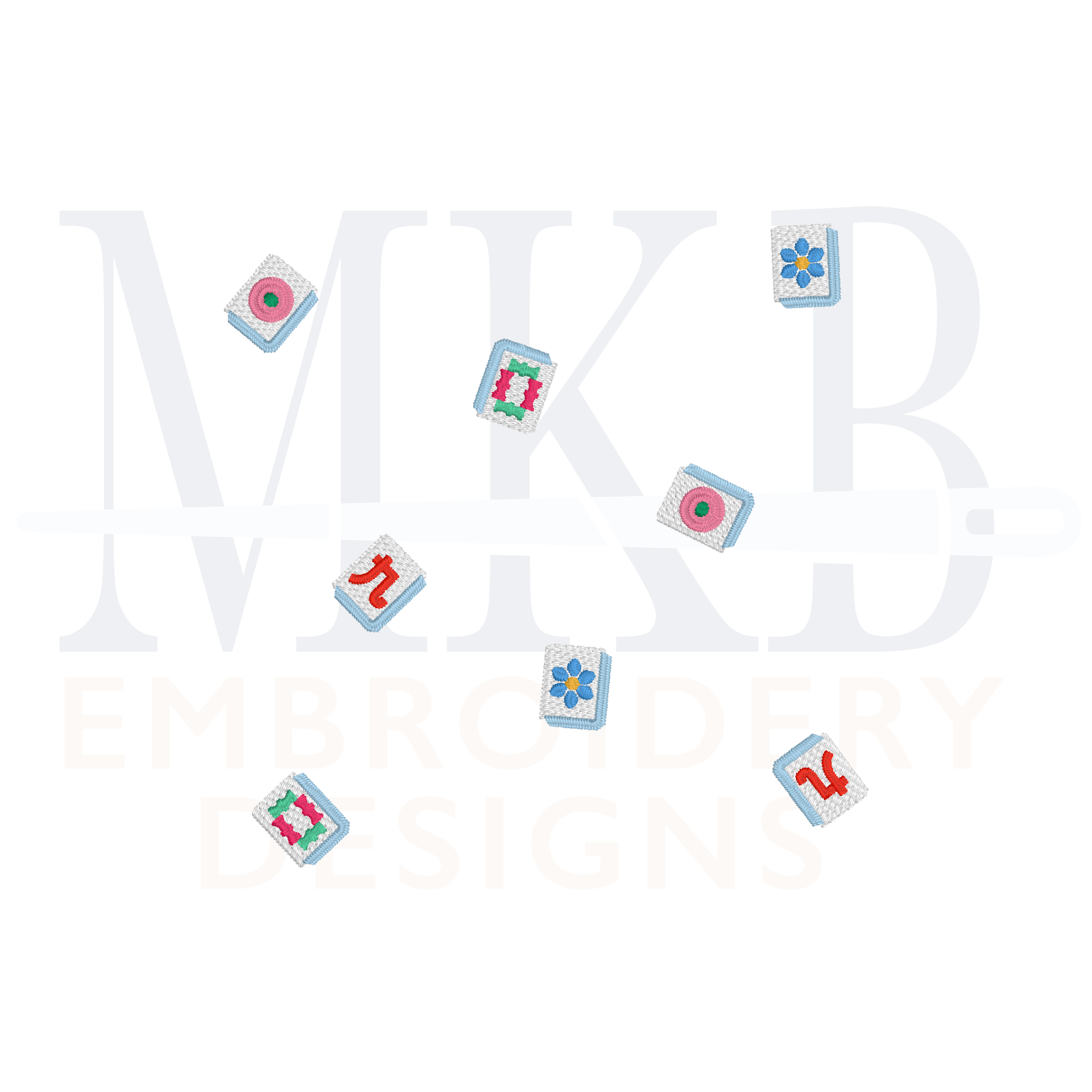 Mahjong Tiles Arranged for Cocktail Napkins Embroidery Design