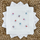 ◾ Embroidery design is arranged/set-up for center of cocktail napkin/coaster for placement.