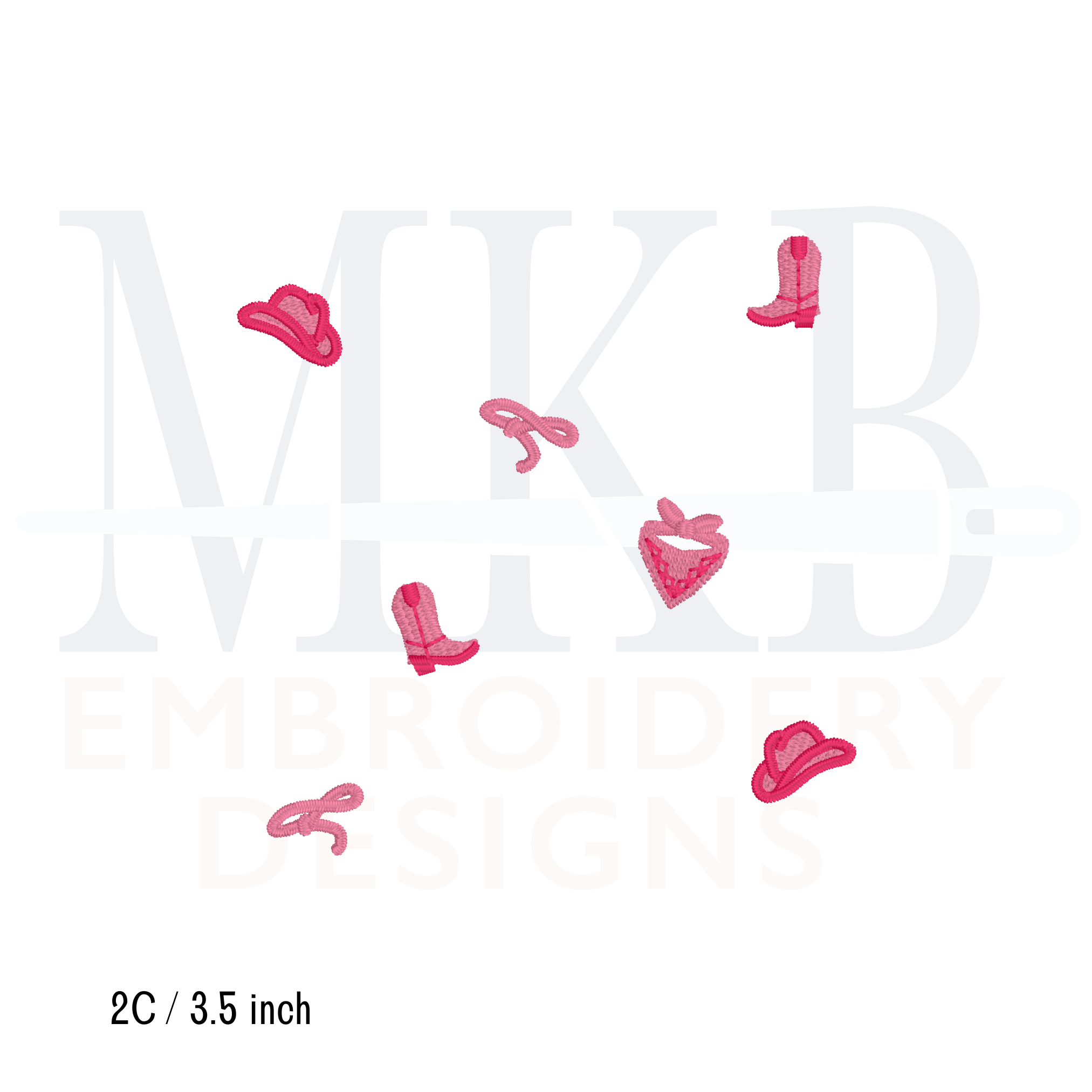 The tiny western rodeo icons are a fill and satin stitch machine embroidery design that include four different icons: cowboy hat, lasso, bandana, and cowboy boot. There is a quick stitch two color (2C) set and an option for up to eight colors for a more customized option. There are a total of six files with two design options. The western embellishments are arranged for you and sized to fit inside of a 6x6 cocktail napkin. The rodeo design files include three different arrangement sizes, depending on the center space/size of your cocktail napkins. Use this western cowboy embroidery design to embellish cocktail napkins or coasters for rodeo, go Texan Day, western themed parties, birthday parties, ranch decor, western or southern weddings, sprucing up your bar cart, hostess gifts, or any cowboy themed celebration. Each size has been tested for quality stitching.