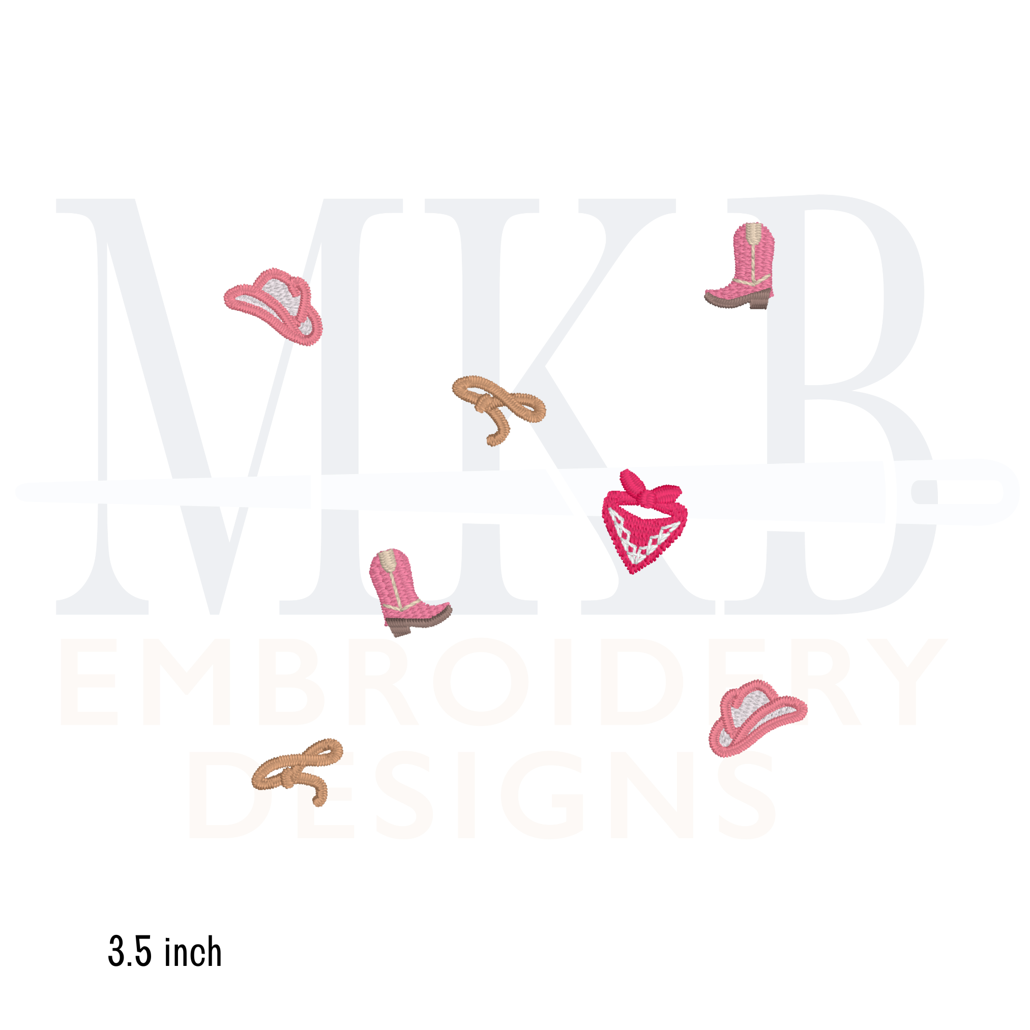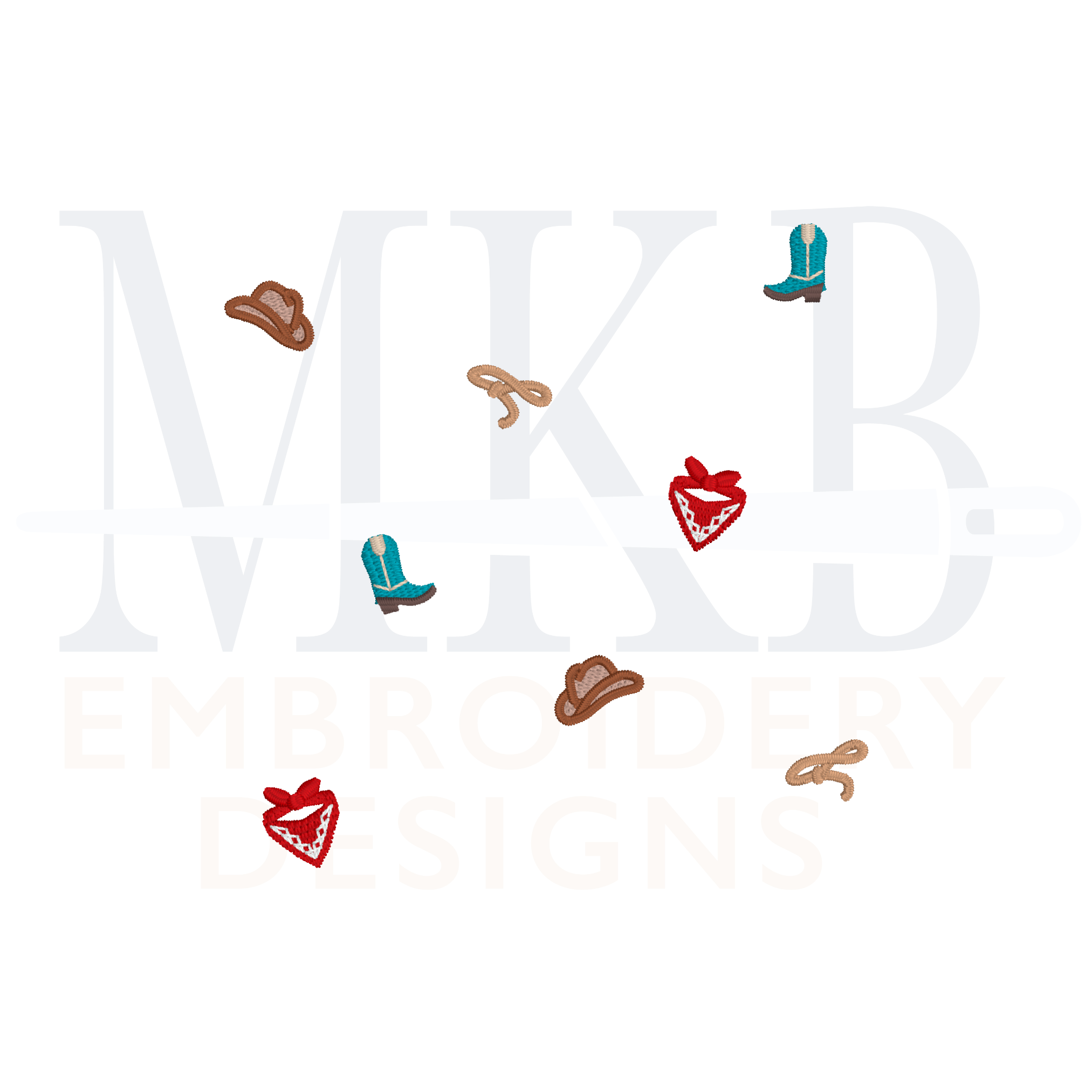 Western Rodeo Icons Arranged for Cocktail Napkins, Machine Embroidery Design File
