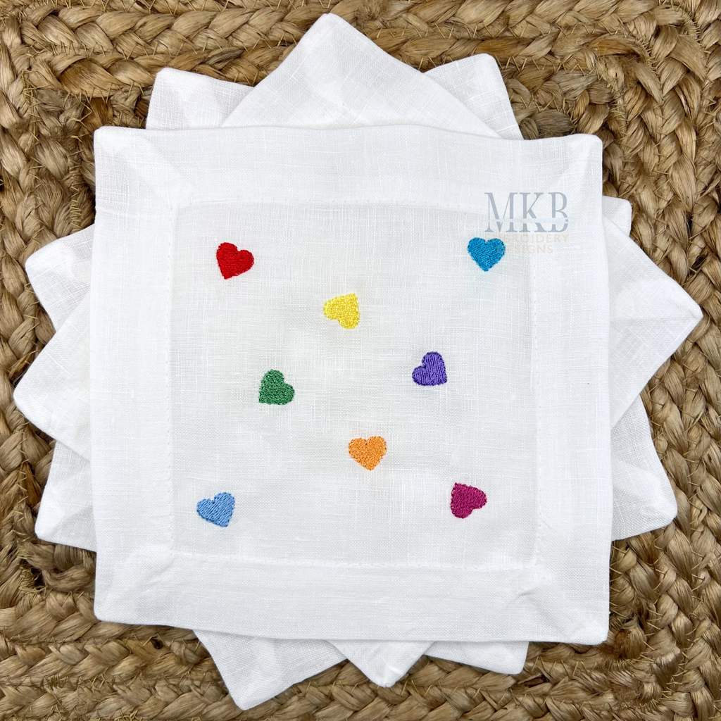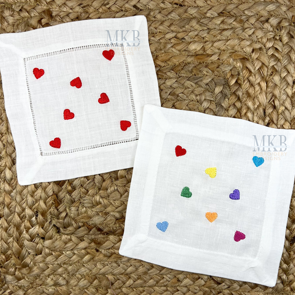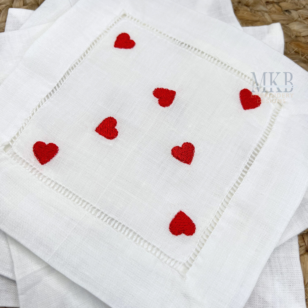 Puff Hearts Arranged for Cocktail Napkins Embroidery Design File