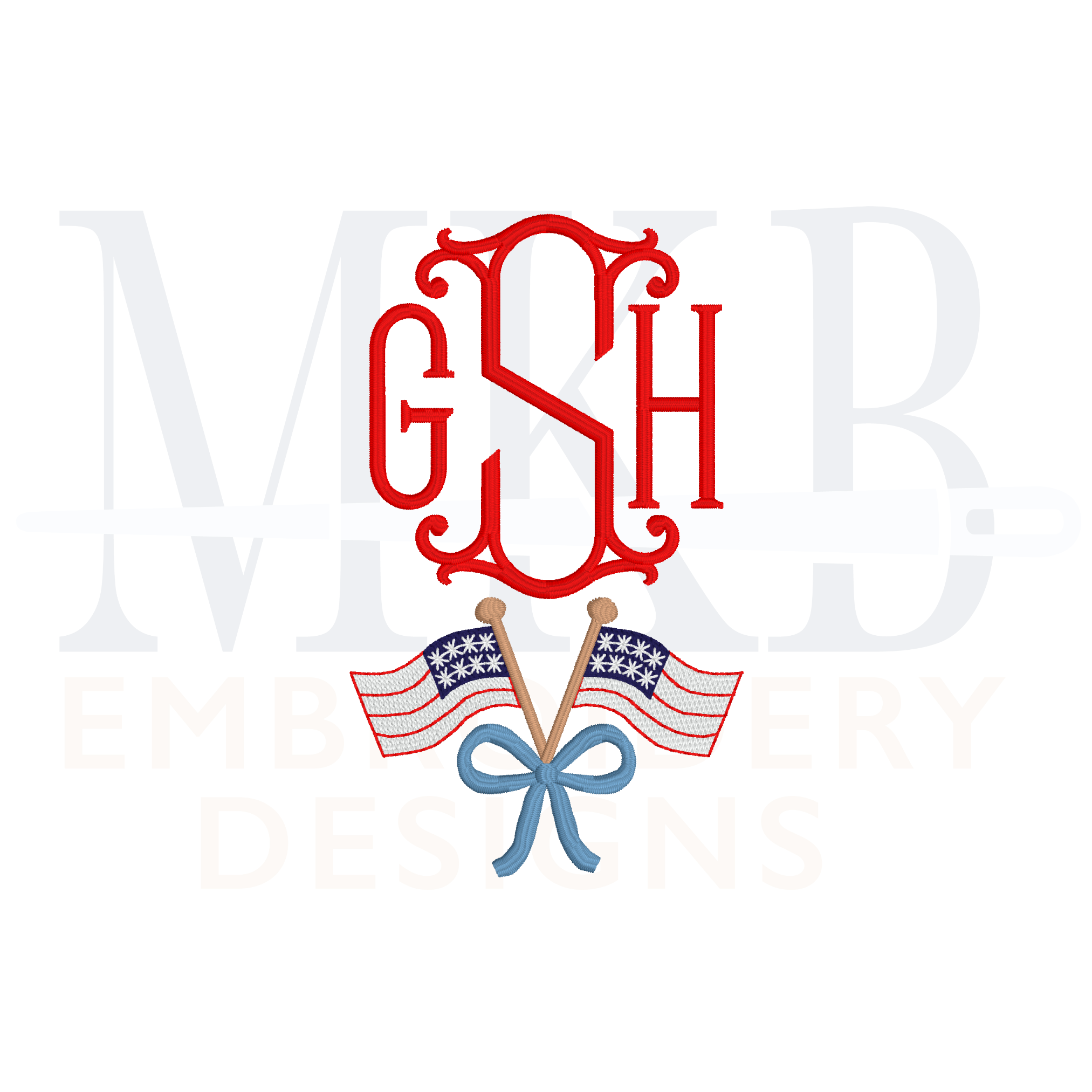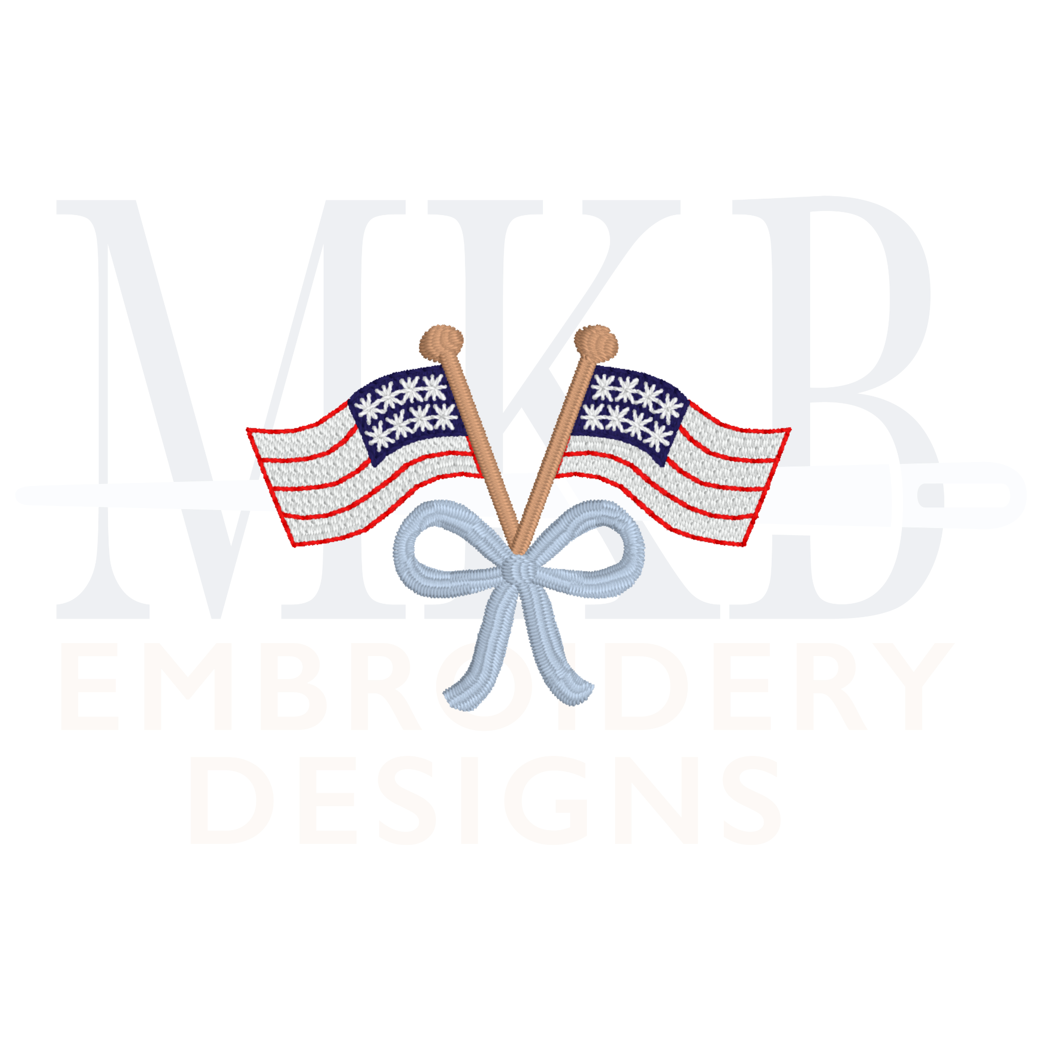 American Flags with Bow Crossed, Light Fill Machine Embroidery Design File