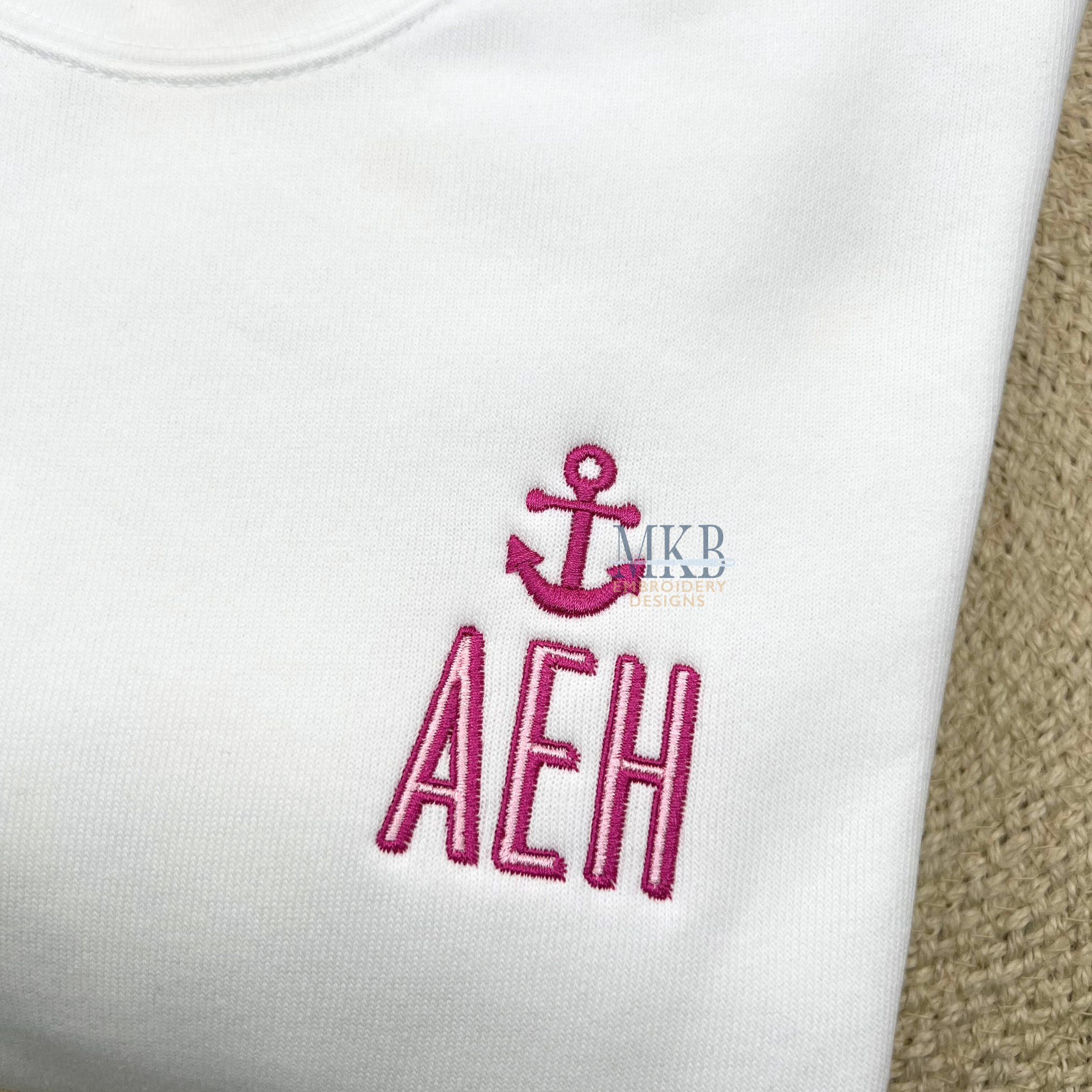 The mini anchor embroidery design is perfect for nautical embroidery projects. There are three simple satin stitch anchors included in the file download. Use this quick stitch nautical design for lake, beach, summer, or nautical monograms. Perfect for garments, tote bags, linens, and more. Each design is tested for quality stitching.