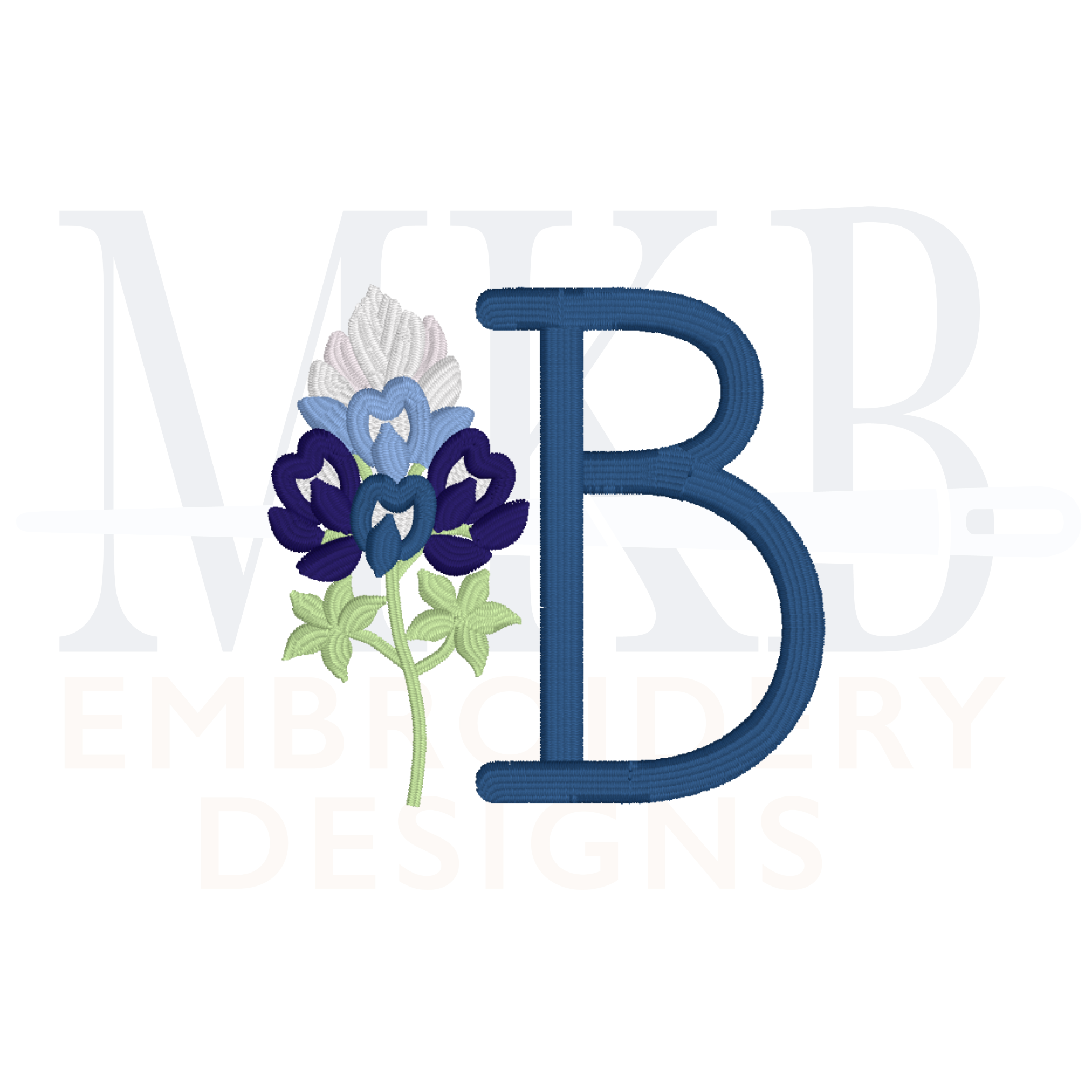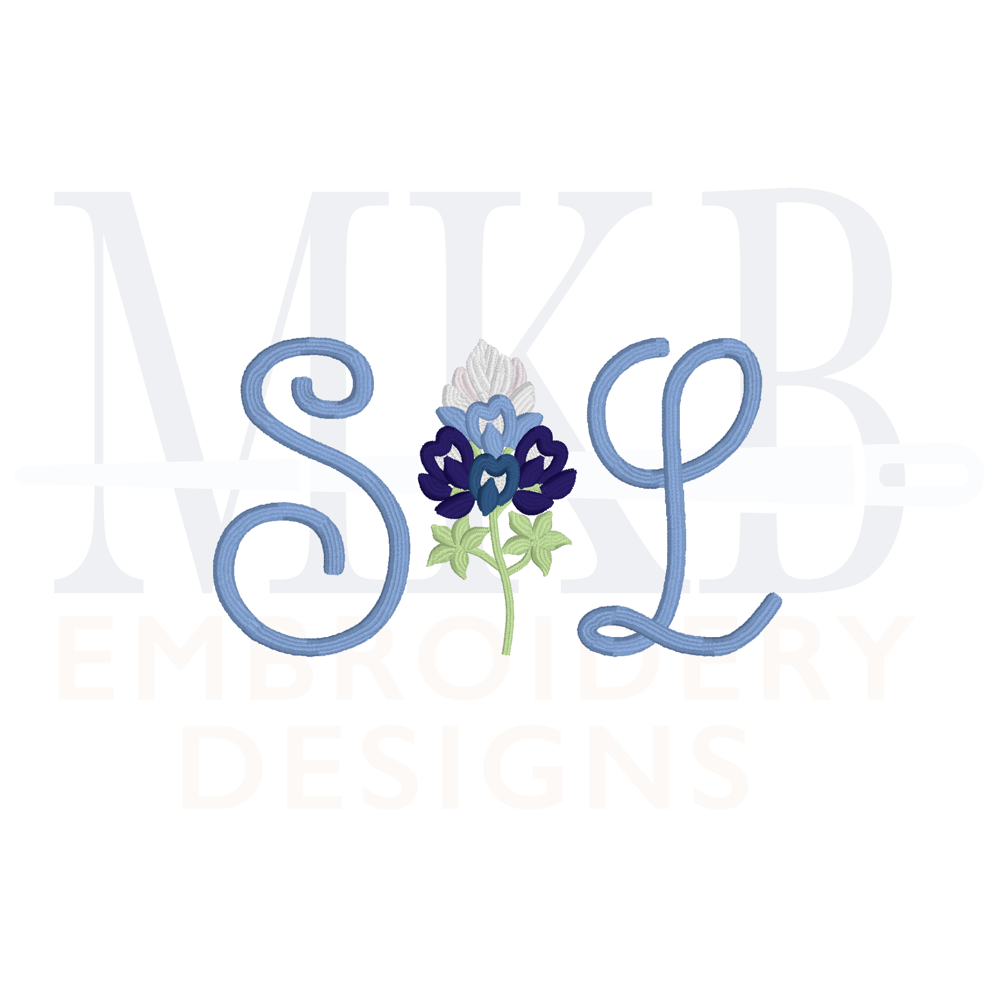 Bluebonnets Embroidery Design, Version One, Satin Stitch Machine Embroidery Design File