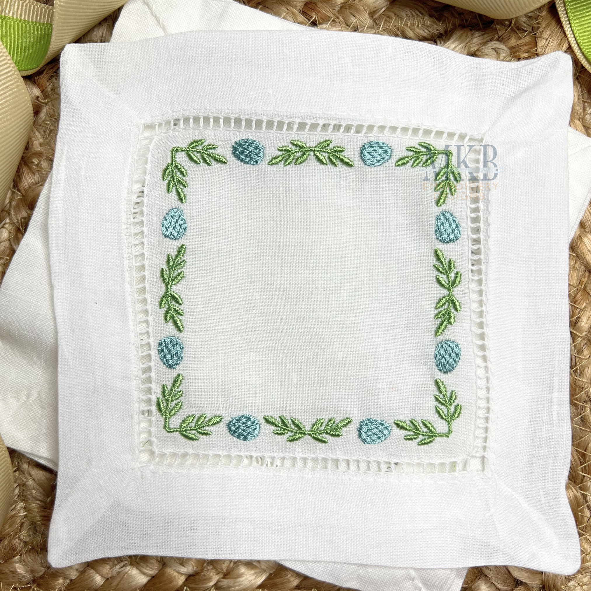 Easter Laurel Border Arranged for Cocktail Napkins, Easter Egg Frame, Spring Greenery, Easter Embroidery, Machine Embroidery Design