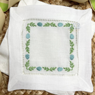 ◾ Embroidery design is arranged/set-up for center of cocktail napkin/coaster placement.