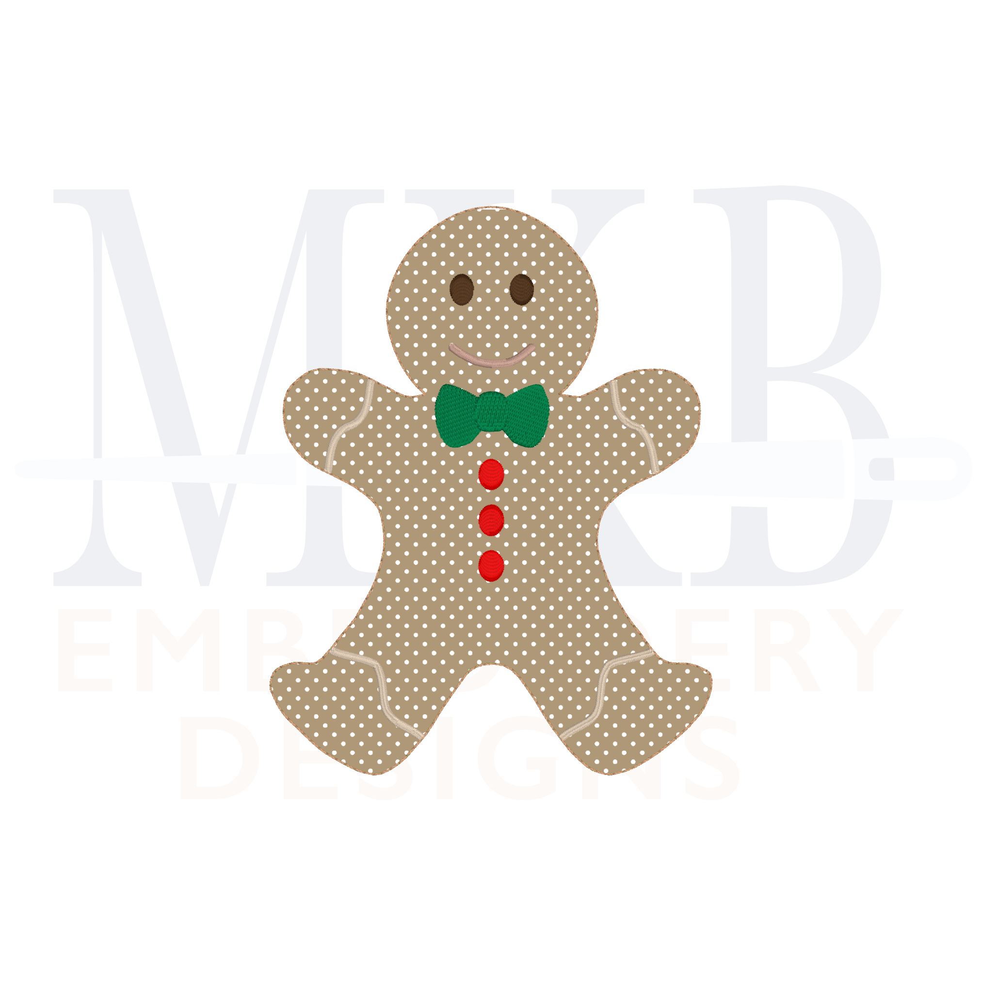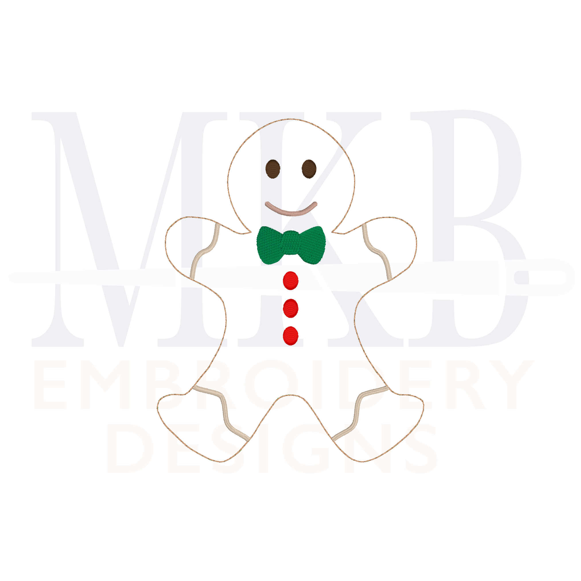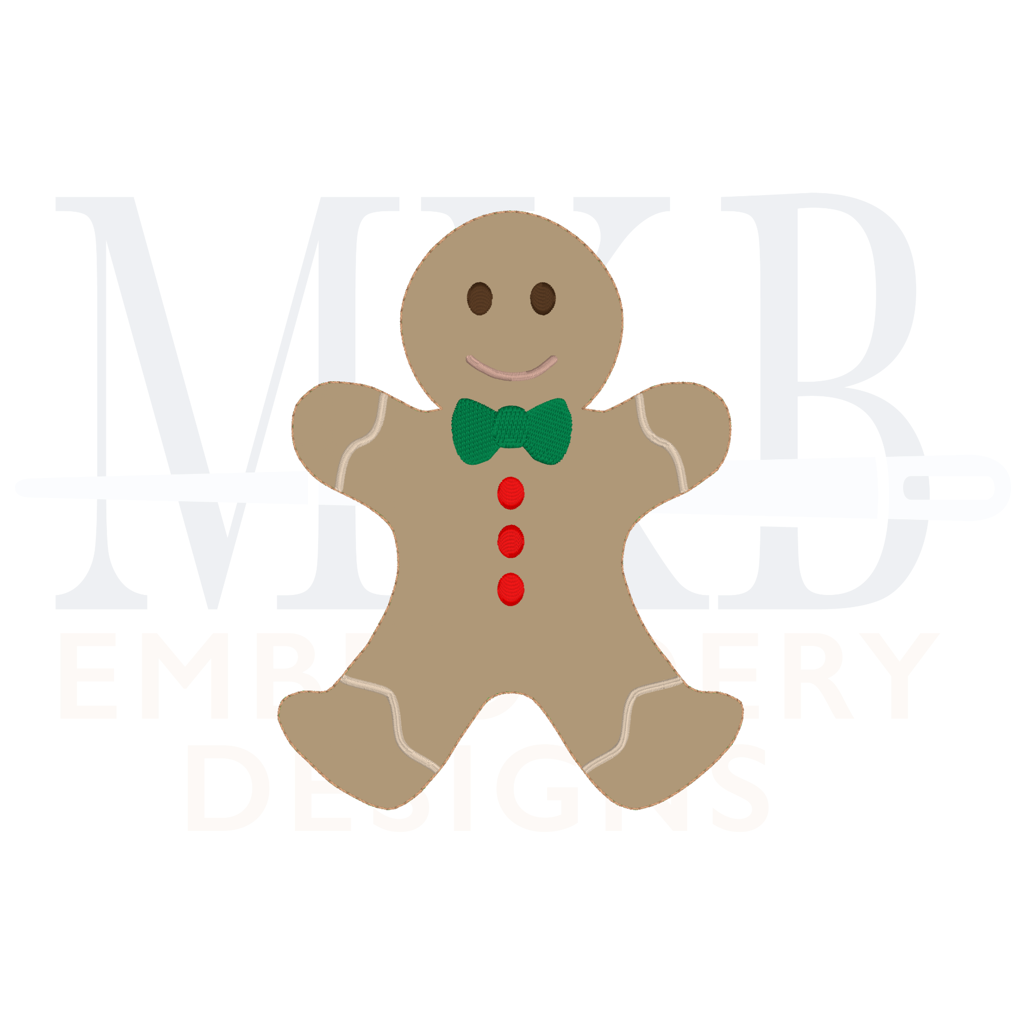 Our gingerbread boy in a bean stitch machine embroidery design is a perfect accent for a Christmas name or monogram. The gingerbread cookie embroidery design has a bow tie and buttons, along with other details Use this cute gingerbread embroidery design to embellish garments such as t-shirts, sweatshirts, onesies, pullovers, and more. Also great for Christmas decor, linens, guest towels, etc. Perfect for Christmas and holiday festivities, hostess gifts, or any winter themed monograms. Each design has been tested for quality stitching.