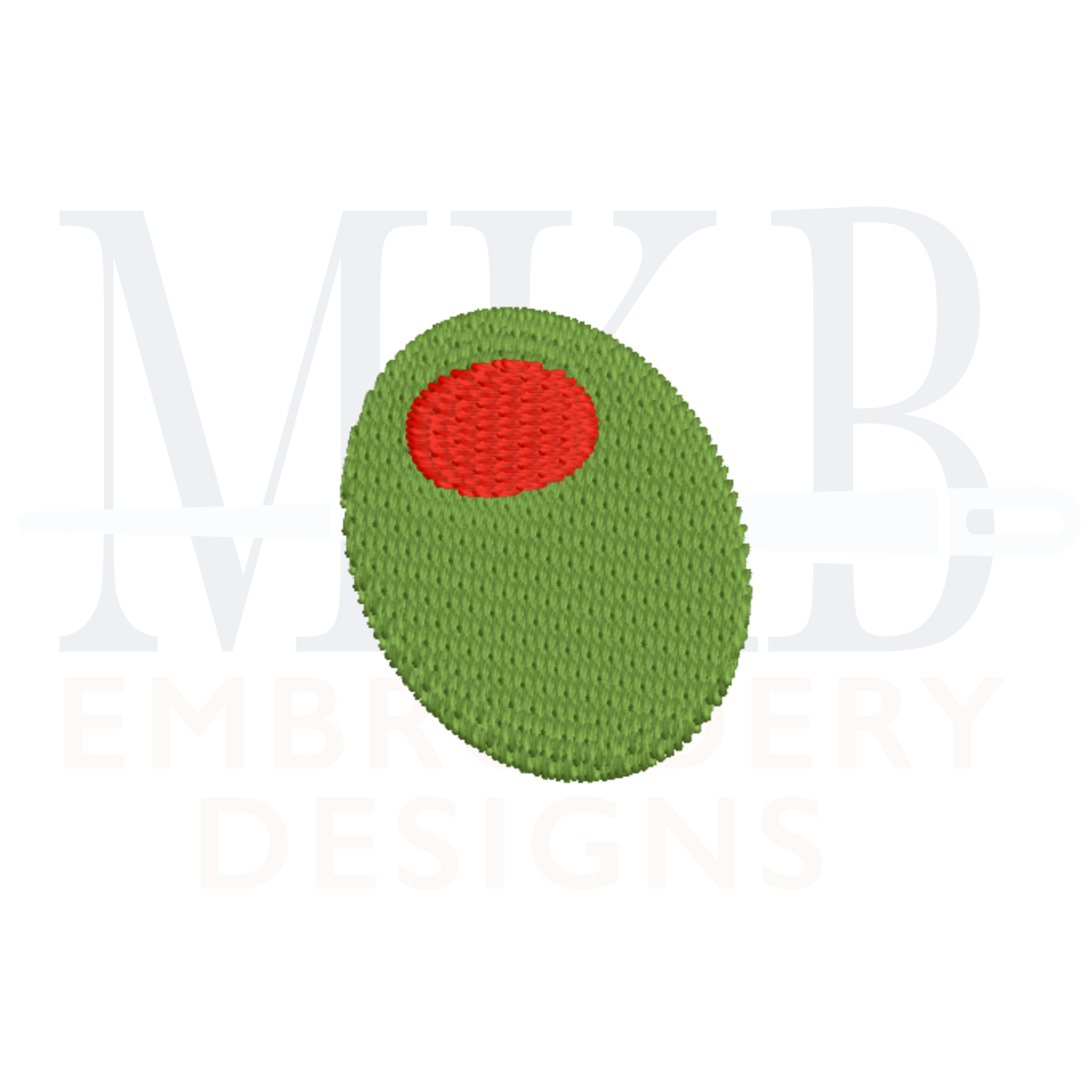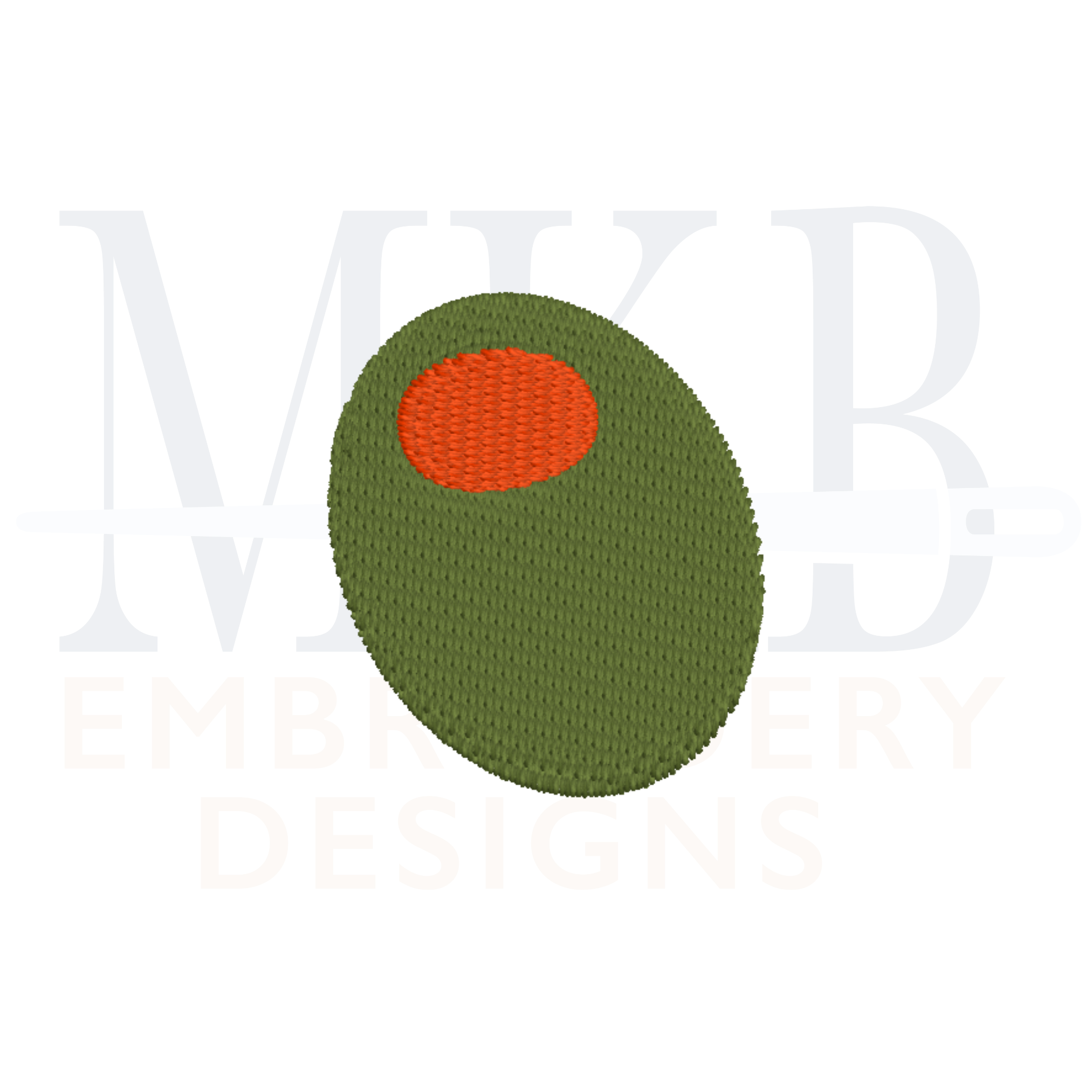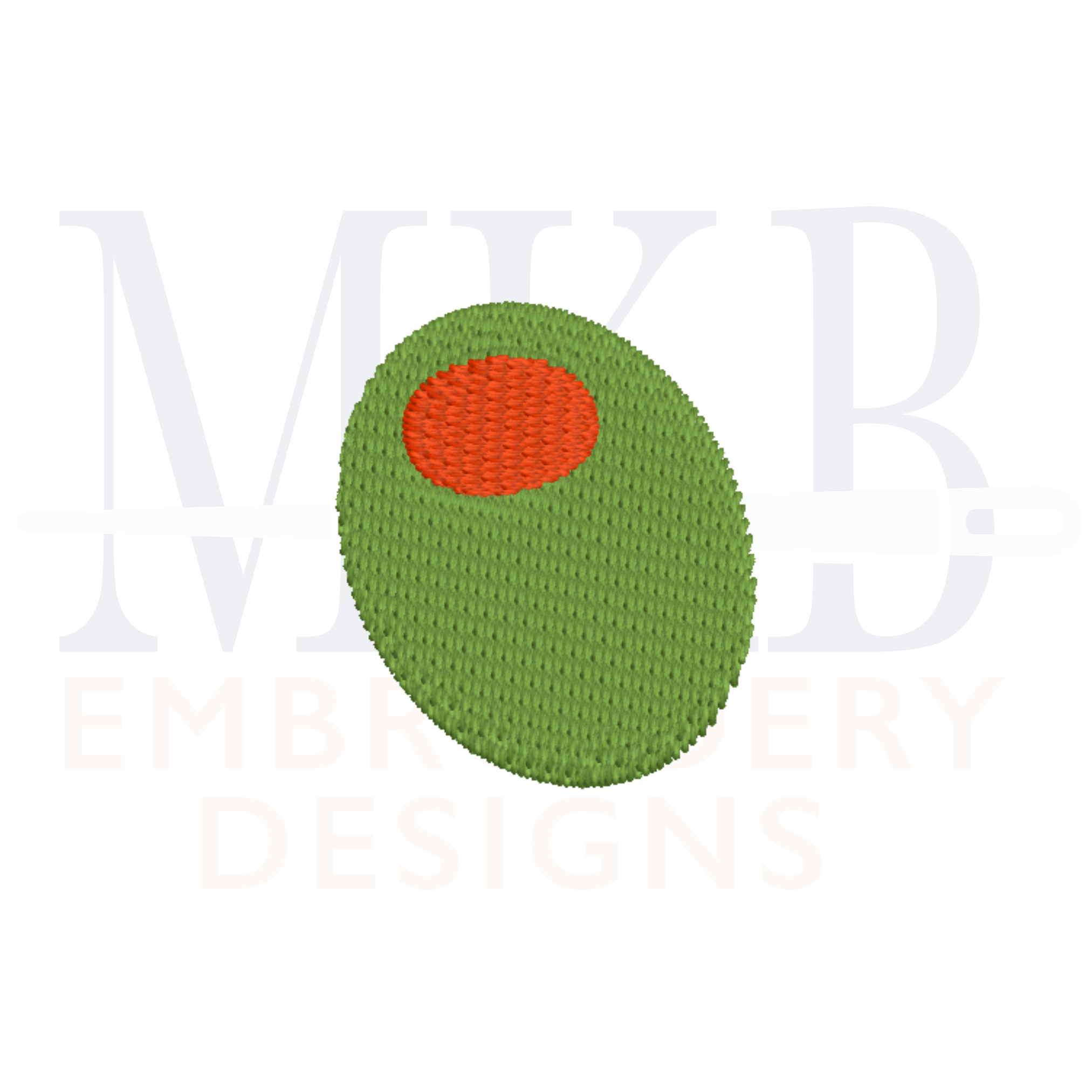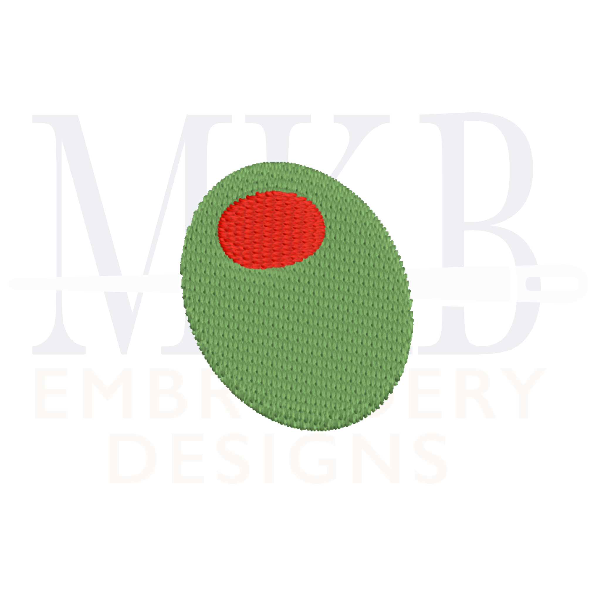 The mini olive is a two color fill stitch embroidery design. The classic cocktail olive embroidery design includes five mini sizes. Perfect for tees, golf shirts, sweatshirts, t-shirts, bodysuits, burp towels, tote bags, and more. Each design has been tested for quality stitching.