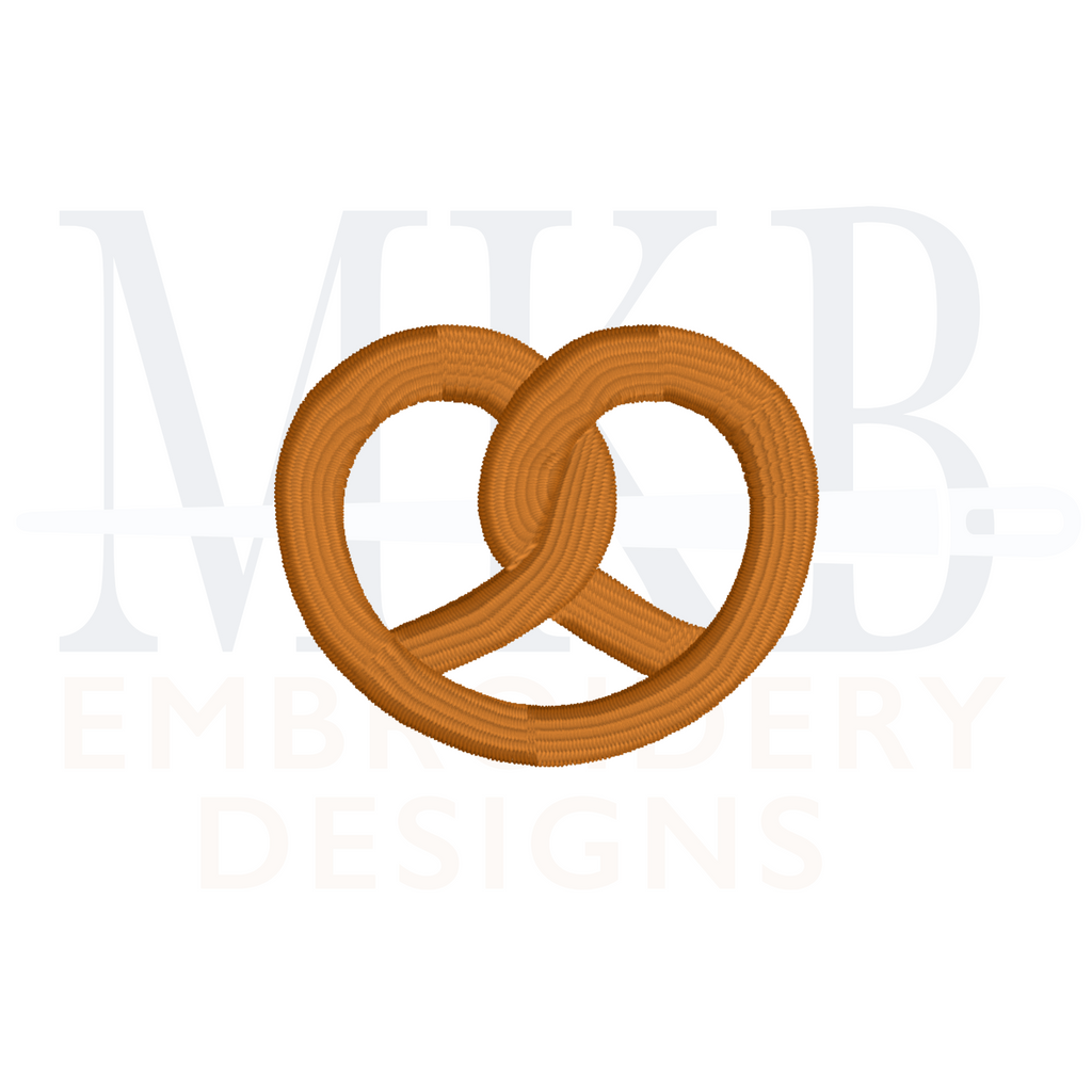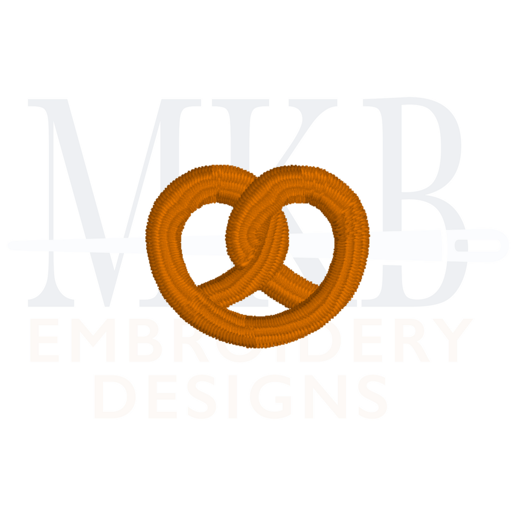 The mini pretzel is a single color satin stitch embroidery design. The quick stitch hard pretzel embroidery design includes three sizes. Perfect for cocktail napkins, linens, tees, golf shirts, sweatshirts, t-shirts, tote bags and more. Each size has been tested for quality stitching.