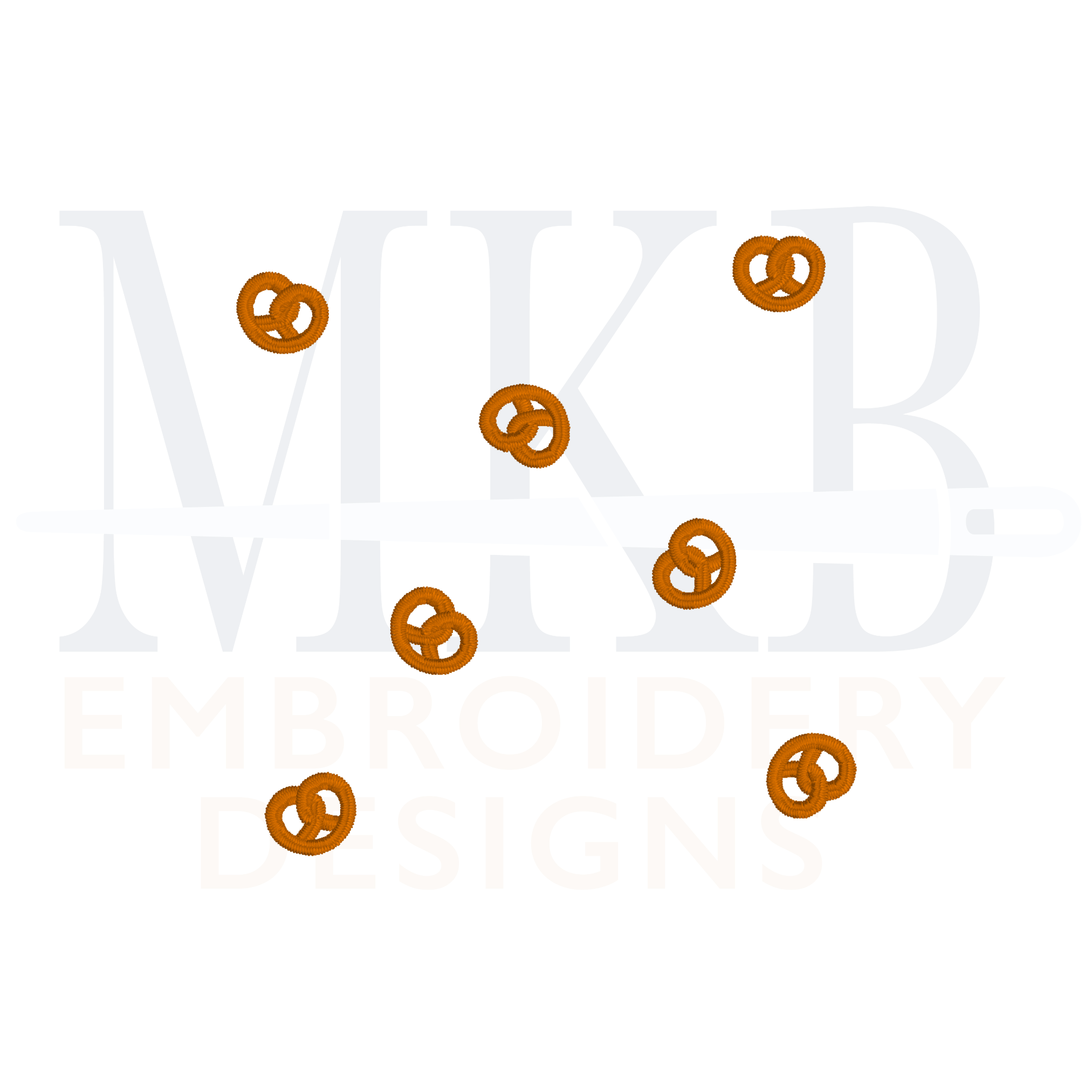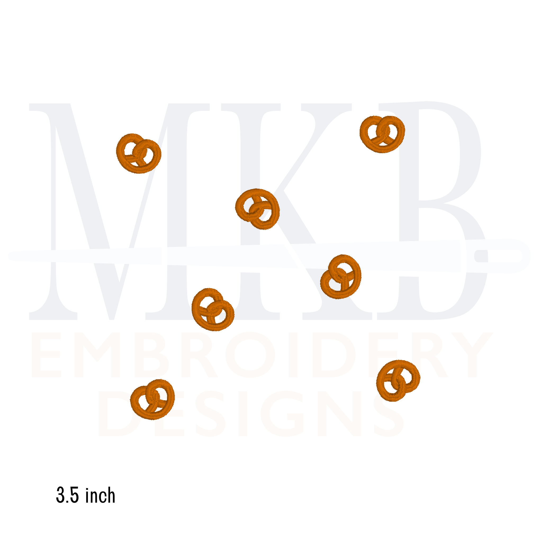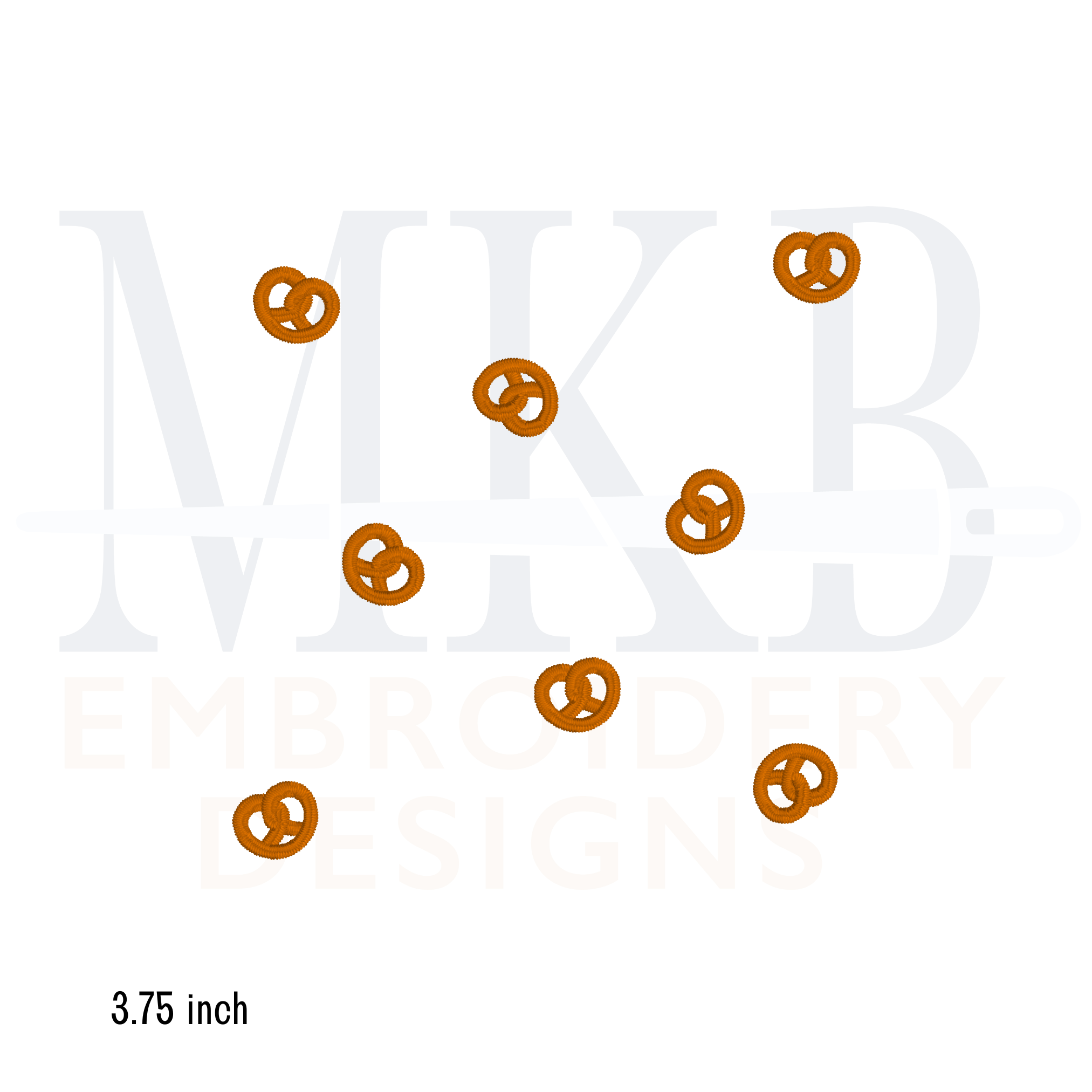 The tiny pretzels are arranged for you and sized to fit inside the center of a 6x6 cocktail napkin. The pretzels are arranged for you so you can get right to stitching. The crispy pretzel design is a single color satin stitch embroidery design. The snack embroidery design files include three different sizes, depending on the center space/size of your cocktail napkins.
