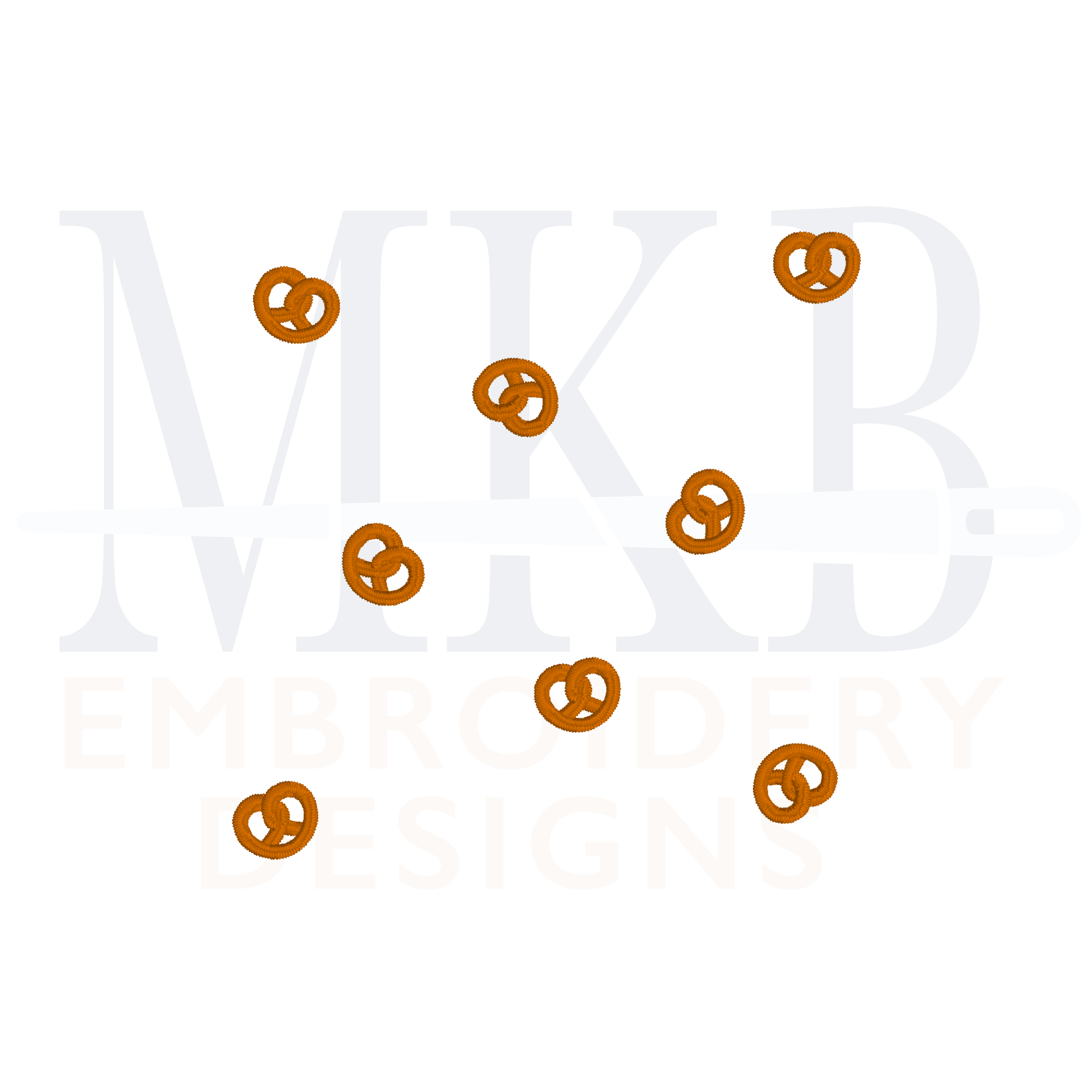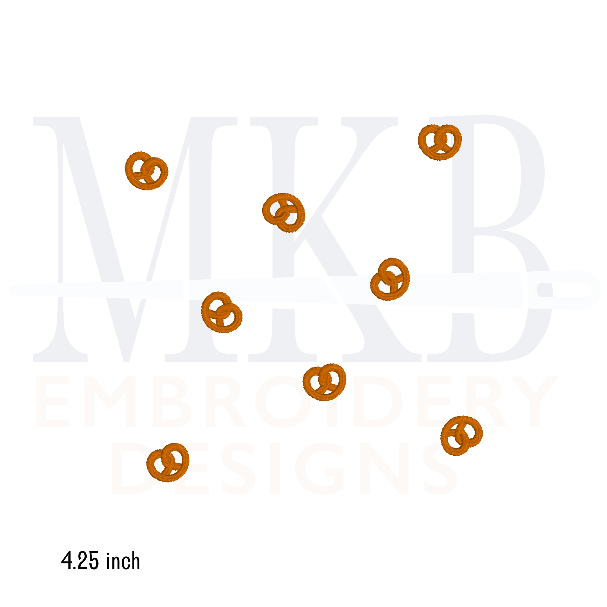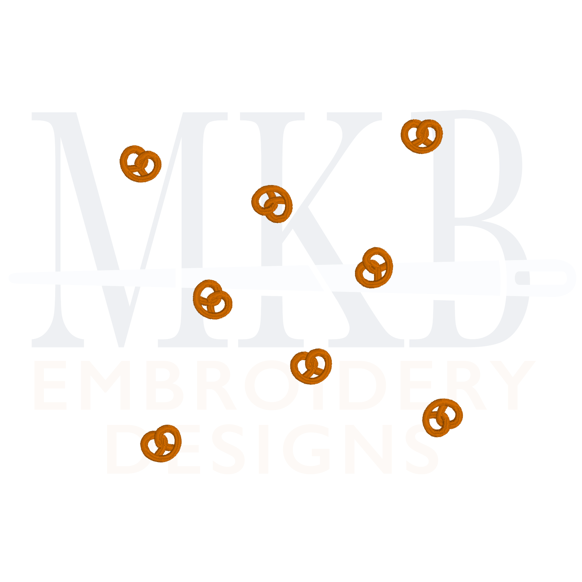 The tiny pretzels are arranged for you and sized to fit inside the center of a 6x6 cocktail napkin. The pretzels are arranged for you so you can get right to stitching. The crispy pretzel design is a single color satin stitch embroidery design. The snack embroidery design files include three different sizes, depending on the center space/size of your cocktail napkins.