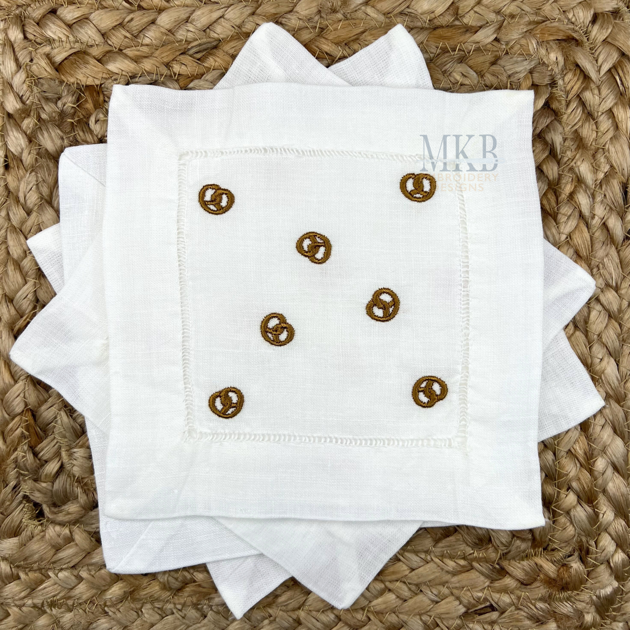 Pretzels Arranged for Cocktail Napkins Machine Embroidery Design File